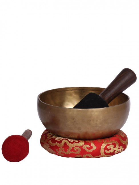 A beautiful inscribed hand hammered plain singing bowl with an embossed Lord Buddha design in the inner bottom. It is made from the combination of seven different metals. The singing bowl produces a relaxing and harmonious sound which is used for yoga, music therapy, to clean the atmosphere around us, to keep the energy balance, to reduce the stress, religious ceremonies and sound healing. It comes with free wooden Mallet and Silk cushion.