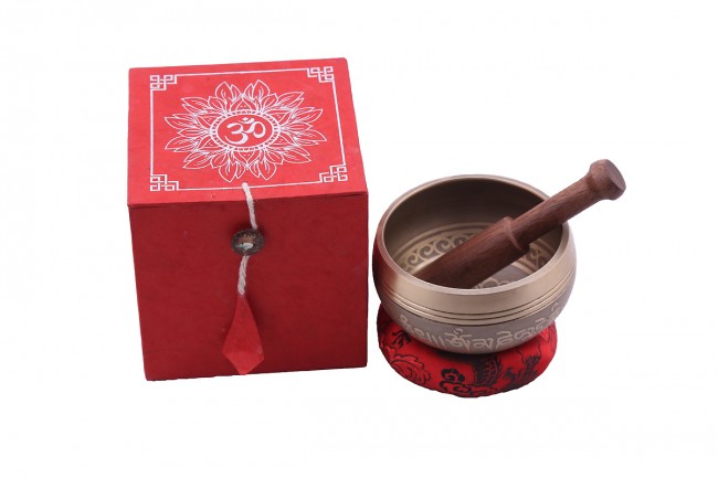 Bowls are made from a mix of traditional metals. It is made from the combination of seven different metals such as iron, mercury, copper, tin, lead, gold and silver. The singing bowl creates a relaxing and harmonious sound which is used for yoga, music therapy, to clean the atmosphere around us and sound healing. Made in Nepal.