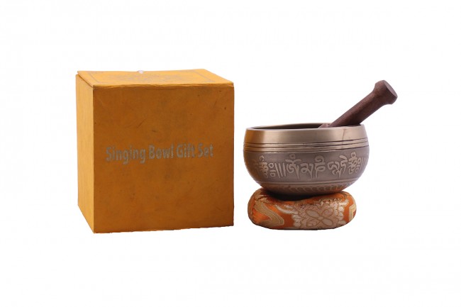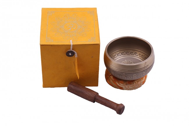 Bowls are made from a mix of traditional metals. It is made from the combination of seven different metals such as iron, mercury, copper, tin, lead, gold and silver. The singing bowl creates a relaxing and harmonious sound which is used for yoga, music therapy, to clean the atmosphere around us and sound healing. Made in Nepal.