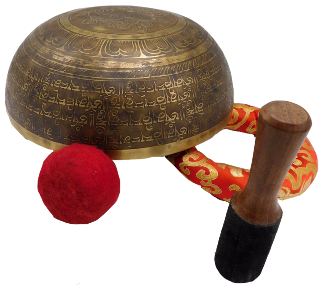 The best way to play the bowl is to tap it with a mallet. Concentrating on the bowl, especially the pulses of sound as they become quieter and quieter, is an excellent way to bring the mind into focus.