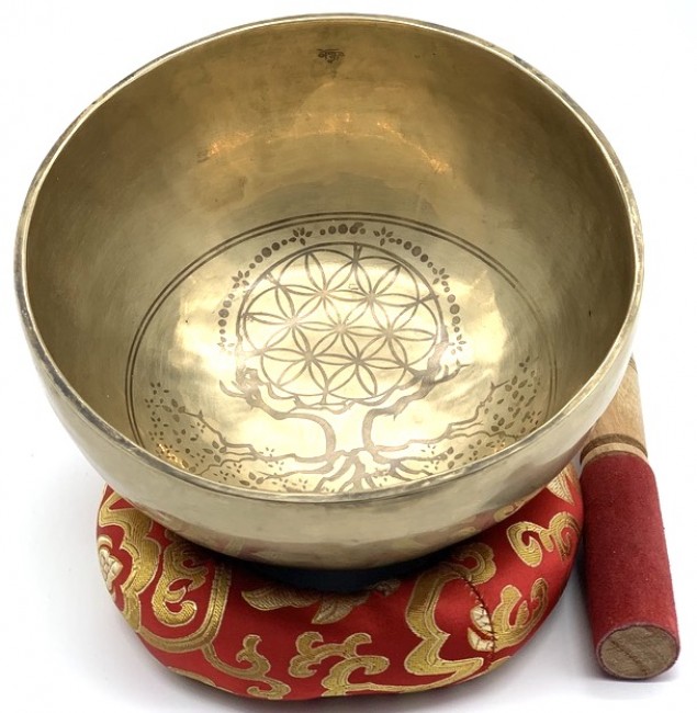 AUTHENTIC HAND HAMMERED (BEATEN) TIBETAN SINGING BOWL SET — This high-quality handcrafted meditation bowl set includes a wooden striker and hand sewn cushion. It is hand hammered in the Himalayan Foothills by Nepalese artisans to be as unique as you are and to create an ambience for emotional calming & healing.