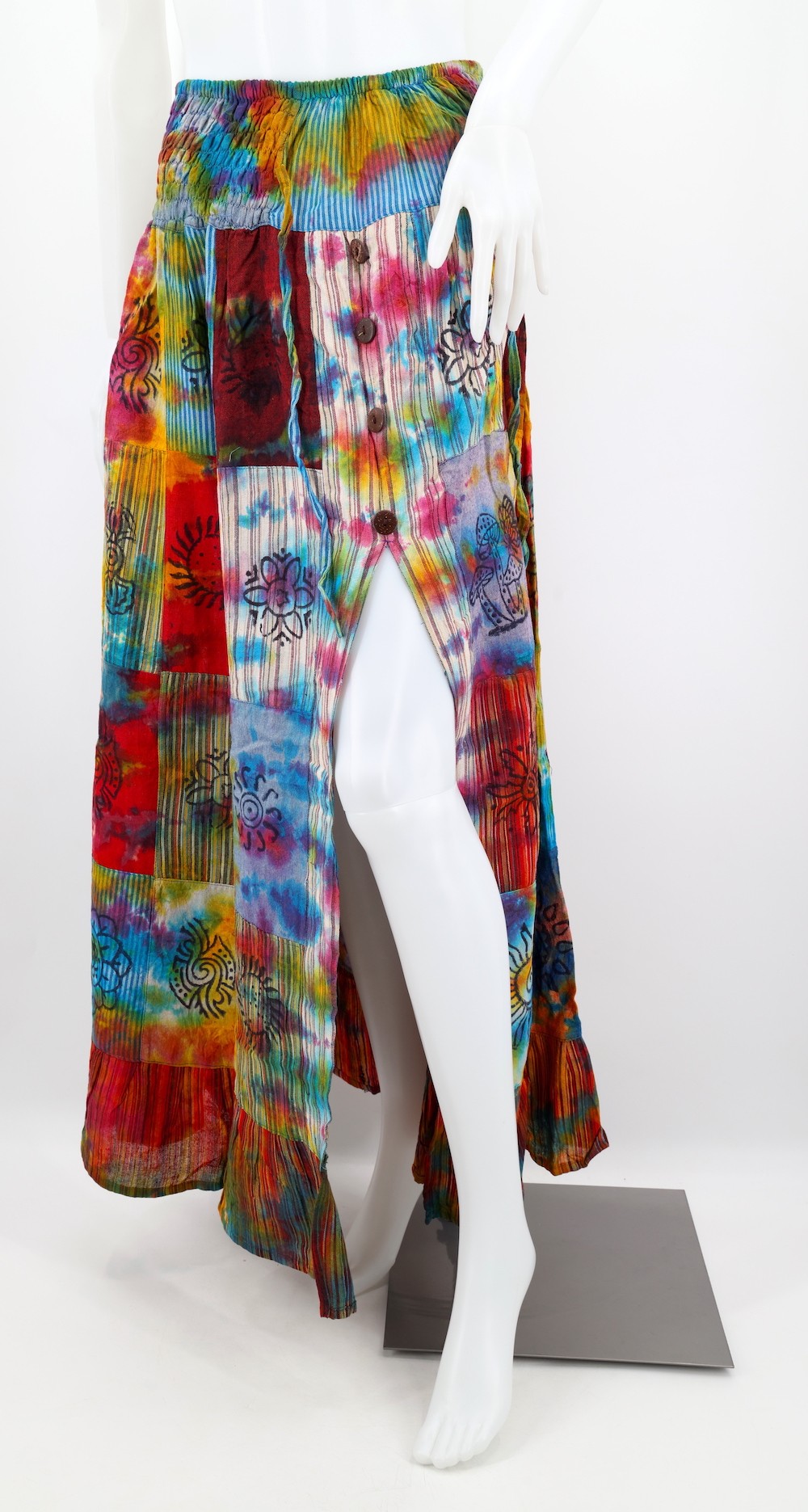 A versatile and beautiful colorful skirt 100% Natural Cotton Fabric stitched by talented artisans in Himalaya range of Nepal. Support underprivileged Nepalese communities with your purchase.