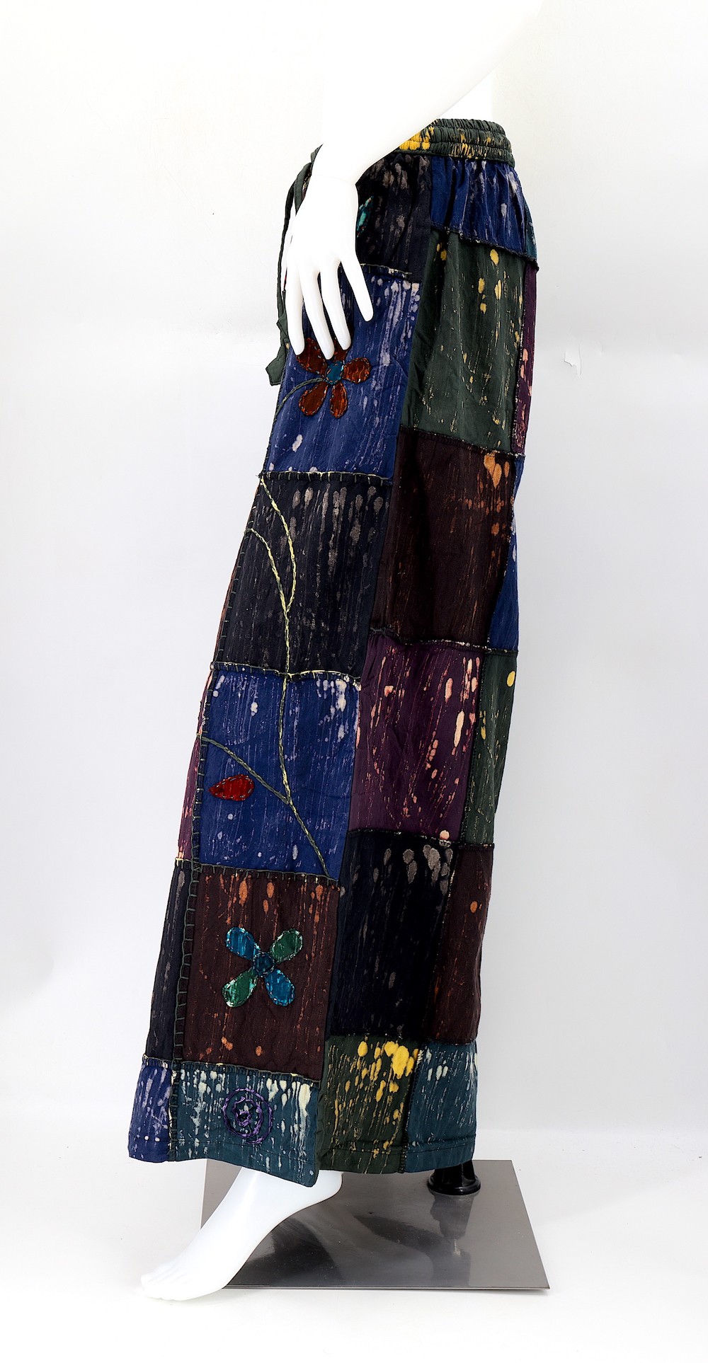 Every clothing item is meticulously handmade, reflecting the care and consideration put into their creation, resulting in unmatched quality. Because our products are handmade, the patchwork colors and patterns on each pair of trousers may vary, making each one unique. The provided image serves as a general representation of the product's appearance.