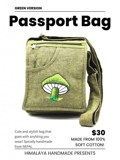 This beautiful Mushroom embroidered 100% pure cotton passport bags are handmade in Nepal. This beautiful passport bag features are it has one pocket in the front & one pocket in the back, it has two compartments, a large main compartment with zippered pocket inside and it has a long adjustable strap 11”-24” inch which you can clutch the bag across your body. This cotton passport bag is extraordinary and fashionable. This passport bag is suitable for carrying document, Mini Tablet, Mobile Phone and Purses.