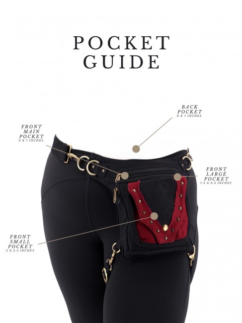 The main large front pocket is wide enough to fit items of all kinds to suit your needs and it measures 7" x 6" and also has a small 6” X 5” zipper pocket in front of it.
