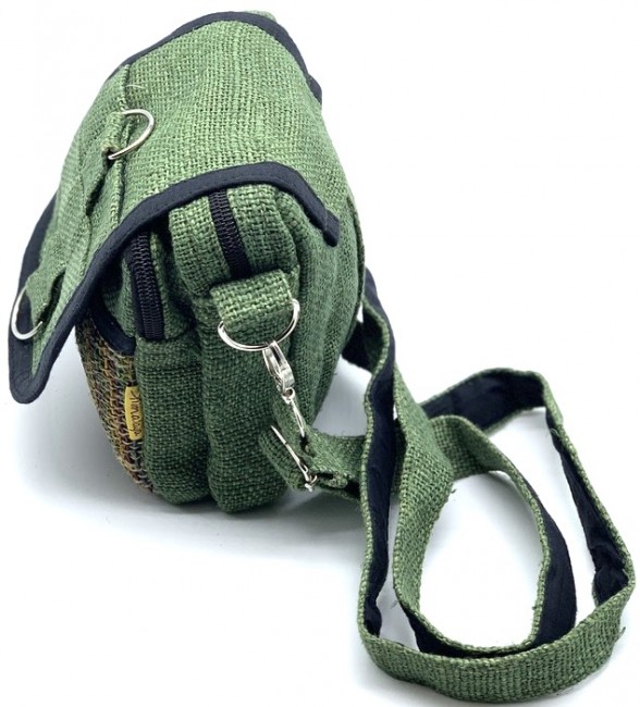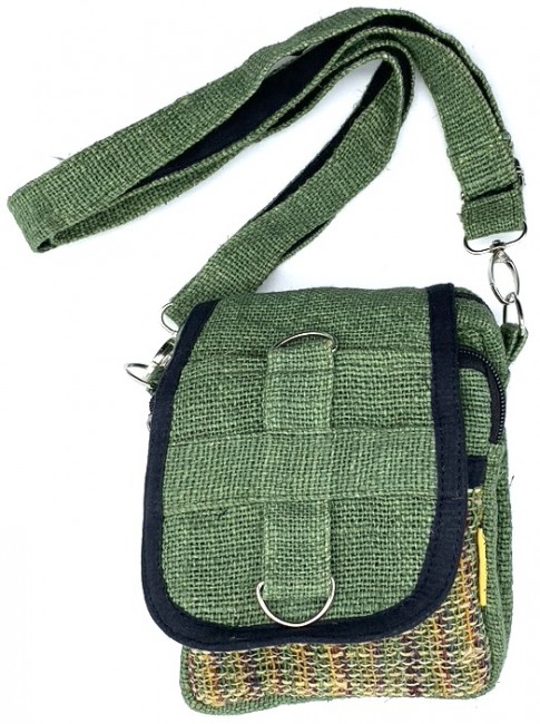 The beautiful hemp Travel bag is hand made in Nepal with pure 100% organic core hemp. This modern hemp passport bag is supremely versatile and fashionable. This bag features are it has two compartments with zippers and it has adjustable strap with outside two pockets in the front and in the main pocket above with a zipper. It is fair trade product.