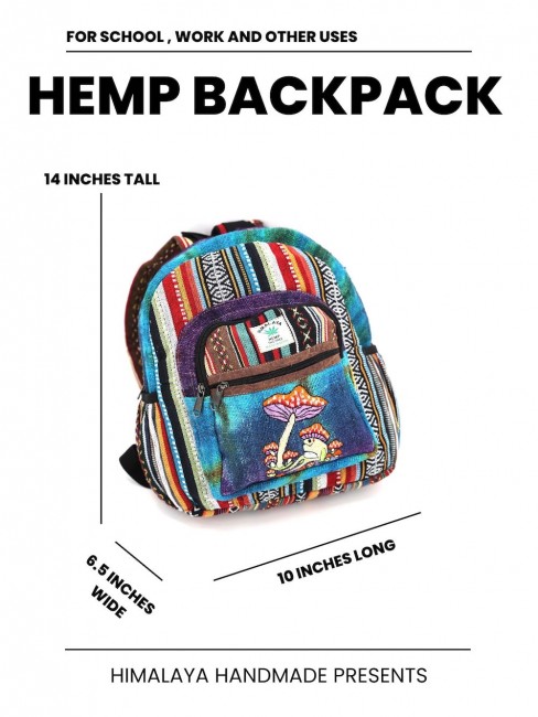 - At Himalaya Handmade we are known for creating the modern Mini hemp backpacks that are now available in profusion of design and colors. Our Mini backpack with multicolor Aztec pattern is made from eco-friendly natural hand-woven hemp and cotton fabric and it is beautifully handcrafted in Nepal, they are high quality and this backpack has everything you need. You will not find higher quality anywhere else. All of our bags are sourced from the mountainous regions of Nepal and are all 100% Handmade. This backpack features are it has a unique multi colored pocket. Handcrafted this Backpack Includes, laptop compartment – fits up to large tablet, 4 separate zippered compartments with 2 pockets, 2 water bottle holders, extremely strong construction, strong original two metal zippers on main compartment, soft padded straps and made from 100% Hemp, the entire bag is extremely strong but also breathable. Color of these bag will not be exact because arrangement of the pattern and these bags are handmade so in color can be slightly different. Pictures color are just example. Every bag is handmade and therefore unique.