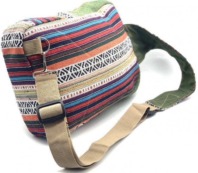 • At Himalaya Handmade we are known for creating the modern Mini Sling hemp backpacks that are now available in profusion of design and colors. Our Mini backpack with multicolor Aztec pattern is made from eco-friendly natural hand-woven hemp and cotton fabric and it is beautifully handcrafted in Nepal, they are high quality and this backpack has everything you need. You will not find higher quality anywhere else. All of our bags are sourced from the mountainous regions of Nepal and are all 100% Handmade. This backpack features are it has a unique multi colored pocket. Handcrafted this Backpack Includes, tablet compartment – fits up to large tablet, 3 separate compartments with 2 pockets being zippered, extremely strong construction, strong original two metal zippers on main compartment, soft padded straps and made from 100% Hemp, the entire bag is extremely strong but also breathable. Color of these bag will not be exact because arrangement of the pattern and these bags are handmade so in color can be slightly different. The image for display is just one of many designs that are available. Every bag is handmade and therefore unique.