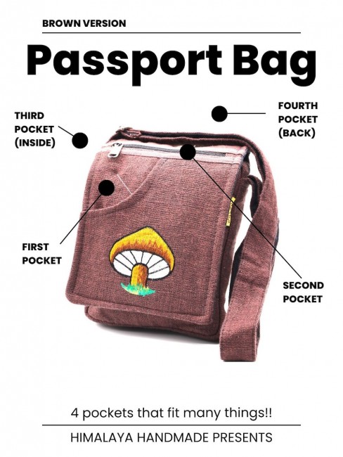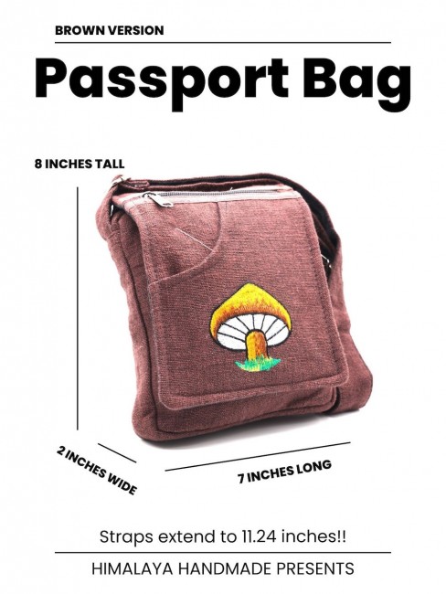 This beautiful Mushroom embroidered 100% pure cotton passport bags are handmade in Nepal. This beautiful passport bag features are it has one pocket in the front & one pocket in the back, it has two compartments, a large main compartment with zippered pocket inside and it has a long adjustable strap 11”-24” inch which you can clutch the bag across your body. This cotton passport bag is extraordinary and fashionable. This passport bag is suitable for carrying document, Mini Tablet, Mobile Phone and Purses.