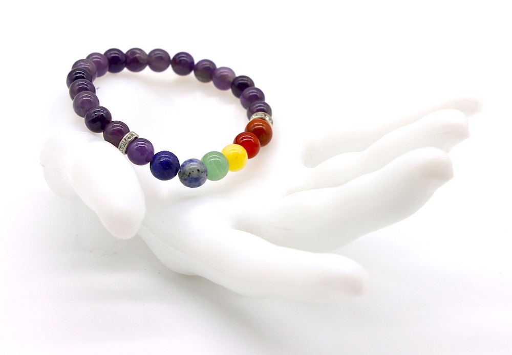 The 8mm Seven Chakra Bracelet is a stunning, handcrafted bracelet that combines vibrant gemstones to represent each of the seven chakras, including the nurturing Rose Quartz. This exquisite bracelet not only enhances your style but also balances and aligns your energy centers, promoting holistic well-being and spiritual harmony. The seven chakras are vital energy centers within the body, representing unique aspects of our physical, emotional, and spiritual well-being. The bracelet features a stunning combination of gemstones carefully chosen to correspond with each chakra, creating a beautiful symphony of colors and energies.