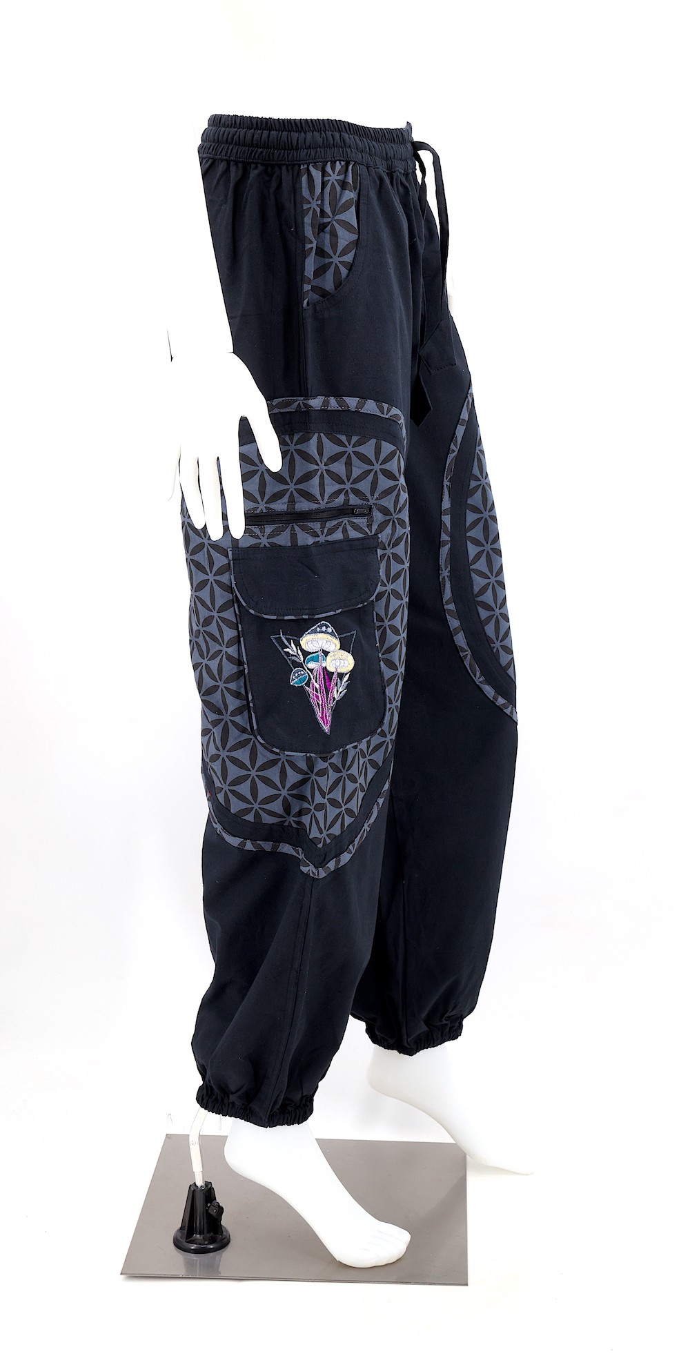 These unique Hippie Solid Color Mushroom Embroidered Plain Flower of Life Patterned Pants are crafted from the finest 100% Natural Handwoven Cotton by some of the most skilled artisans. Elevate your style instantly with these extraordinary and highly fashionable Solid Color Pants that are suitable for almost any occasion, ensuring you look your best every single time.