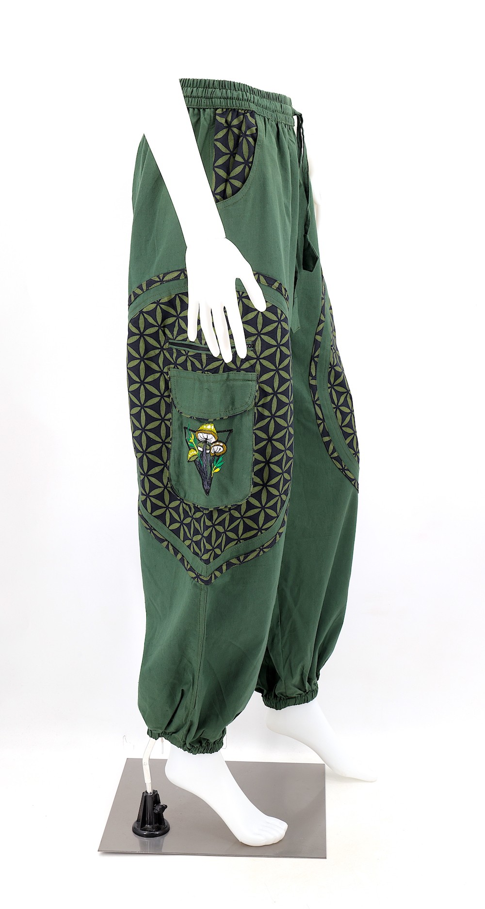 These unique Hippie Solid Color Mushroom Embroidered Plain Flower of Life Patterned Pants are crafted from the finest 100% Natural Handwoven Cotton by some of the most skilled artisans. Elevate your style instantly with these extraordinary and highly fashionable Solid Color Pants that are suitable for almost any occasion, ensuring you look your best every single time.