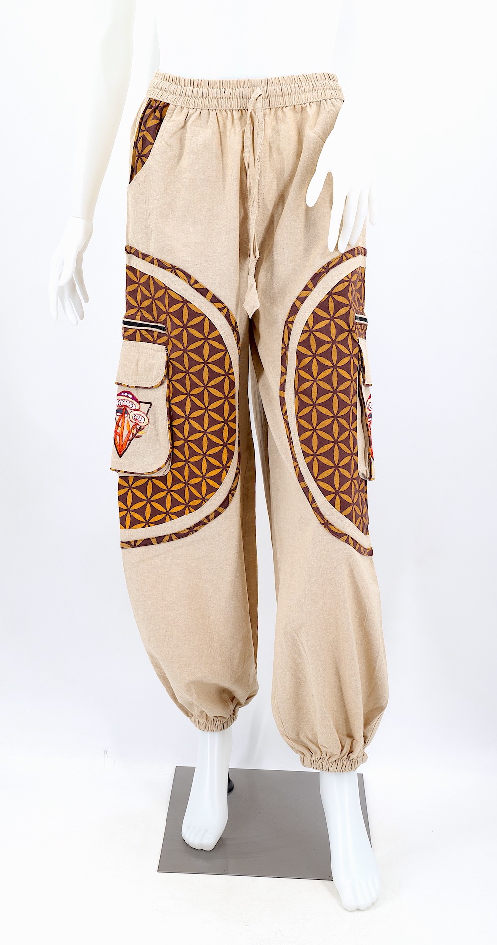 These unique Hippie Solid Color Mushroom Embroidered Plain Flower of Life Patterned Pants are crafted from the finest 100% Natural Handwoven Cotton by some of the most skilled artisans. Elevate your style instantly with these extraordinary and highly fashionable Solid Color Pants that are suitable for almost any occasion, ensuring you look your best every single time.
