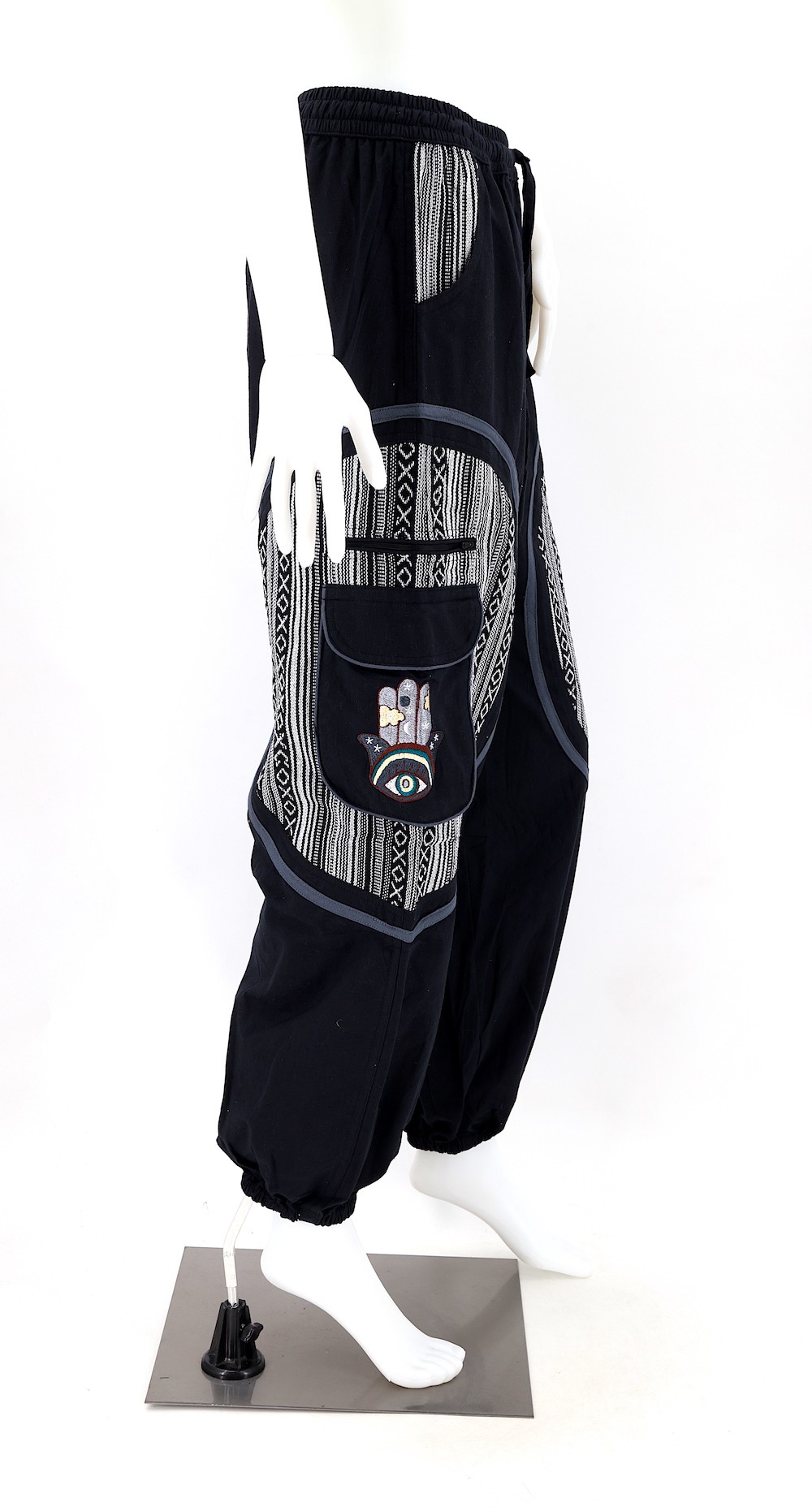 These unique Hippie Solid Color Plain Hamsa Hand Gheri mix Pants are crafted from the finest 100% Natural Handwoven Cotton by some of the most skilled artisans. Elevate your style instantly with these extraordinary and highly fashionable Solid Color Pants that are suitable for almost any occasion, ensuring you look your best every single time.