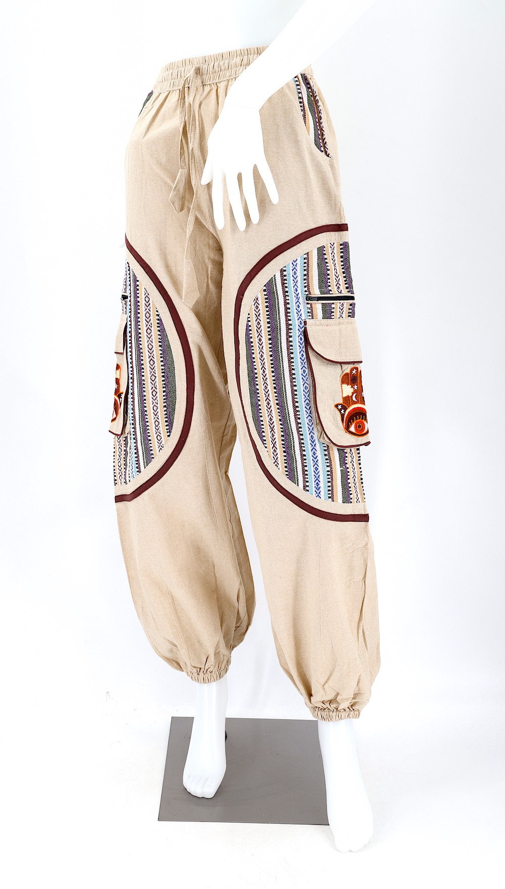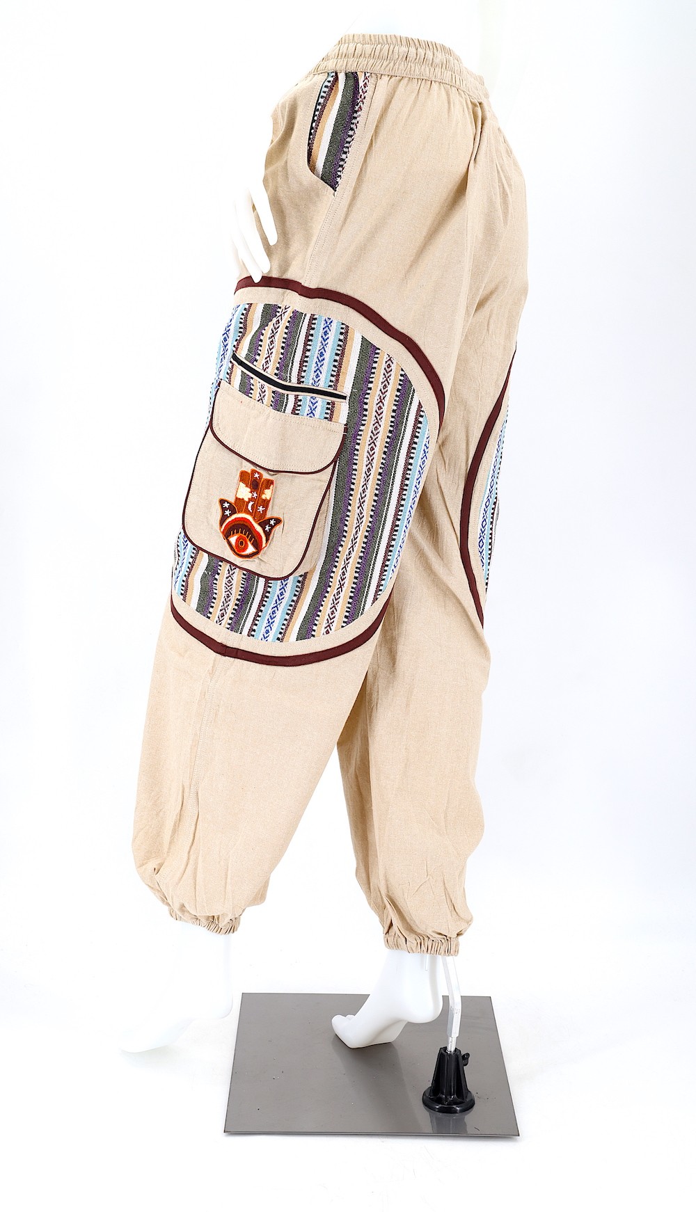 These unique Hippie Solid Color Plain Hamsa Hand Gheri mix Pants are crafted from the finest 100% Natural Handwoven Cotton by some of the most skilled artisans. Elevate your style instantly with these extraordinary and highly fashionable Solid Color Pants that are suitable for almost any occasion, ensuring you look your best every single time.