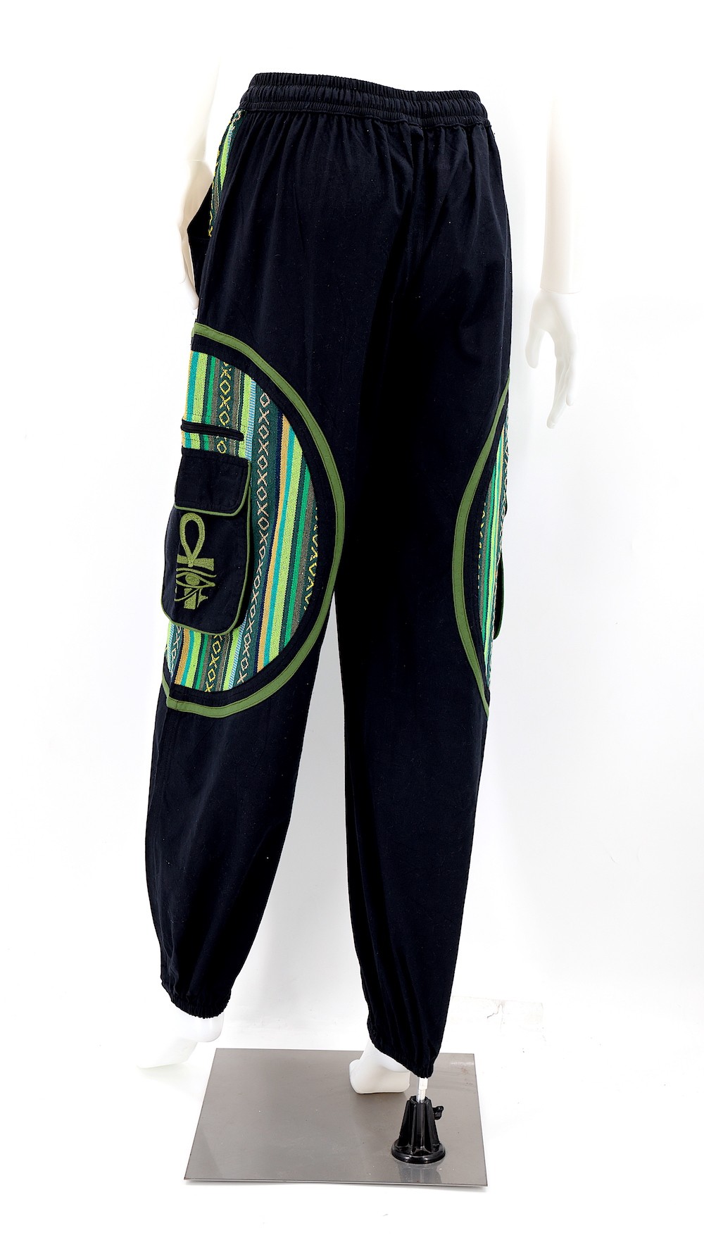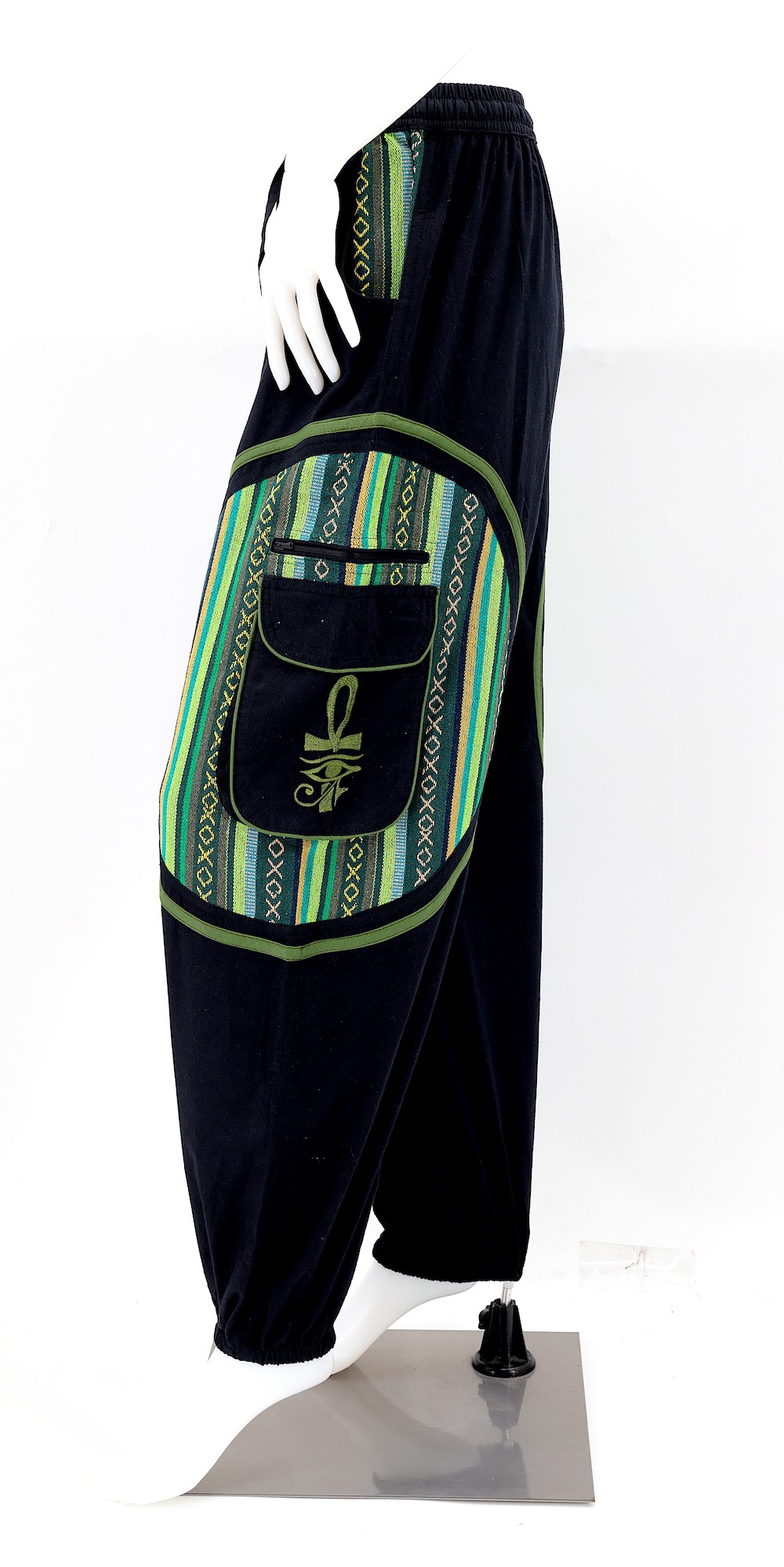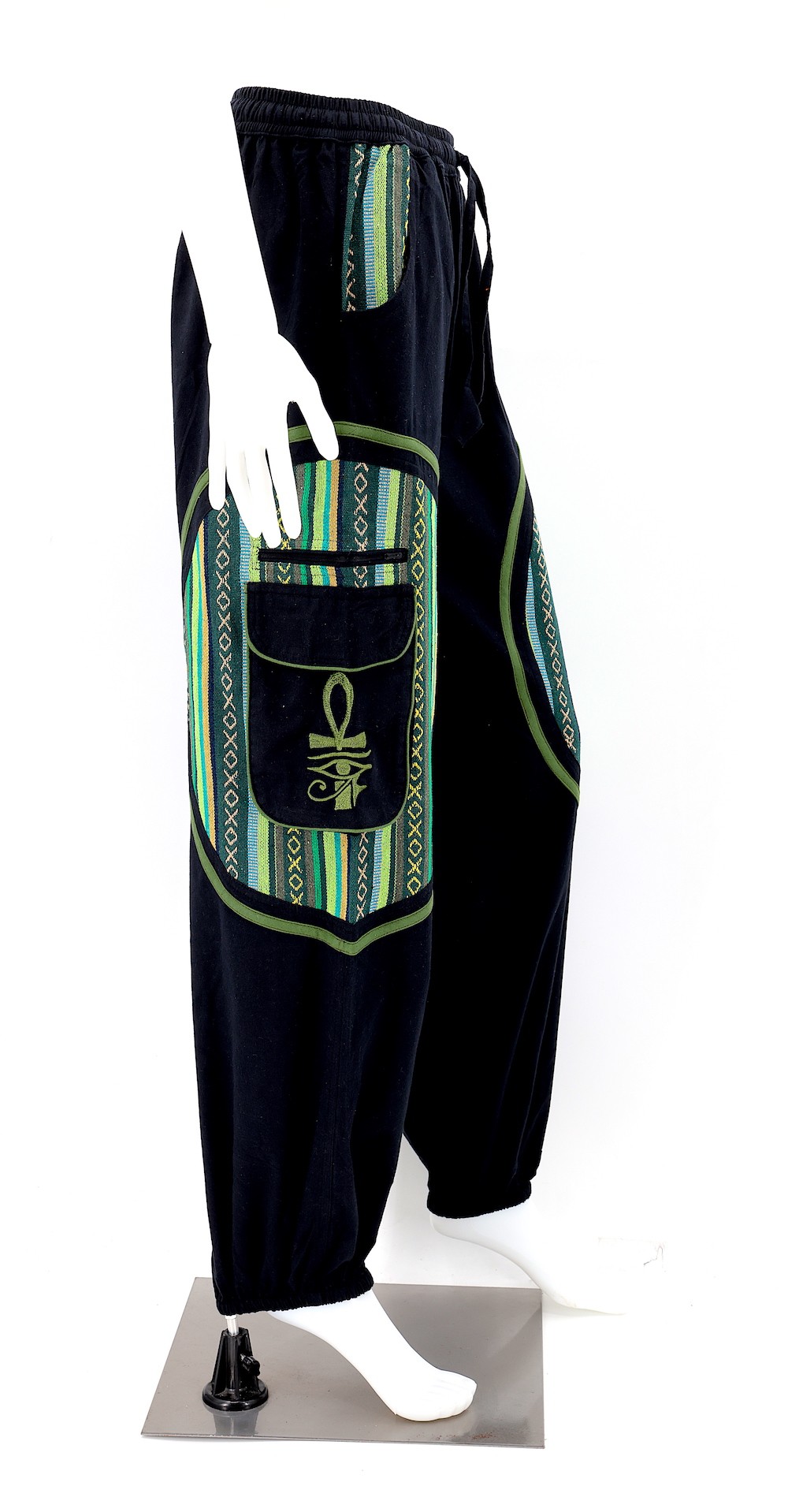 These unique Hippie Solid Color Eye of Ra, Eye of Horus, and Egyptian Ankh Embroidered Plain Gheri Patterned Pants are crafted from the finest 100% Natural Handwoven Cotton by some of the most skilled artisans. Elevate your style instantly with these extraordinary and highly fashionable Solid Color Pants that are suitable for almost any occasion, ensuring you always look your best.
