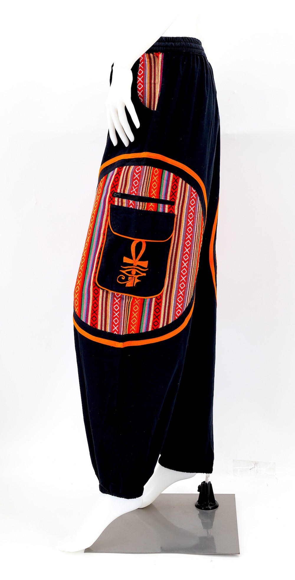 These unique Hippie Solid Color Eye of Ra, Eye of Horus, and Egyptian Ankh Embroidered Plain Gheri Patterned Pants are crafted from the finest 100% Natural Handwoven Cotton by some of the most skilled artisans. Elevate your style instantly with these extraordinary and highly fashionable Solid Color Pants that are suitable for almost any occasion, ensuring you always look your best.