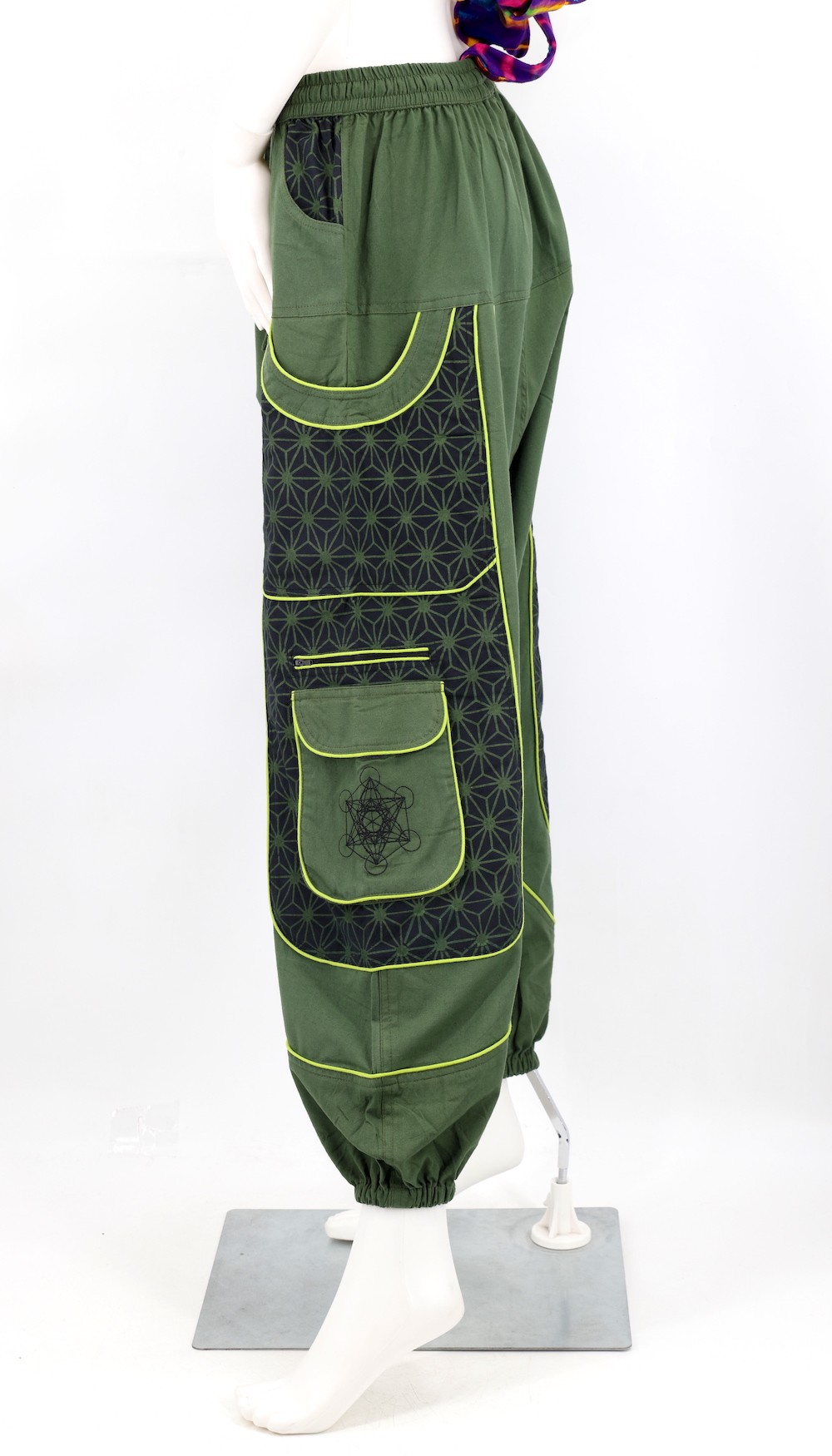 These unique Hippie Solid Colored Metatron's Cube Embroidered Geometric Patterned Pants are crafted from the finest 100% Natural Handwoven Cotton by some of the most skilled artisans. Elevate your style instantly with these extraordinary and highly fashionable Solid Color Pants that are suitable for almost any occasion, ensuring you look your best every single time.