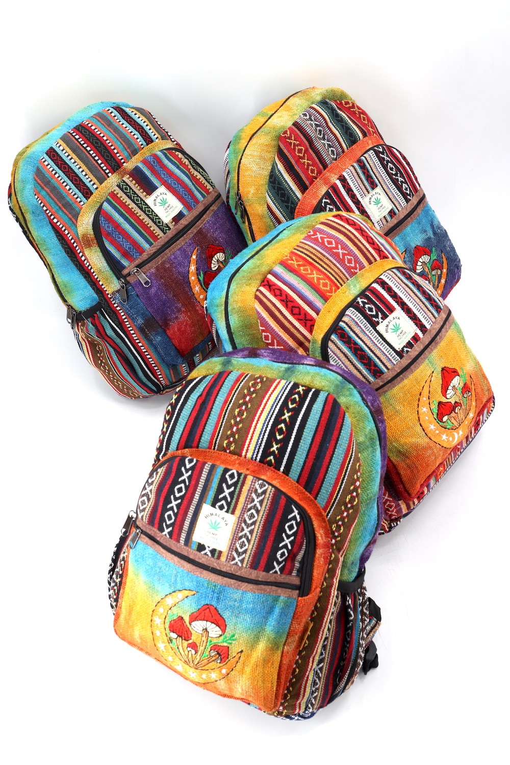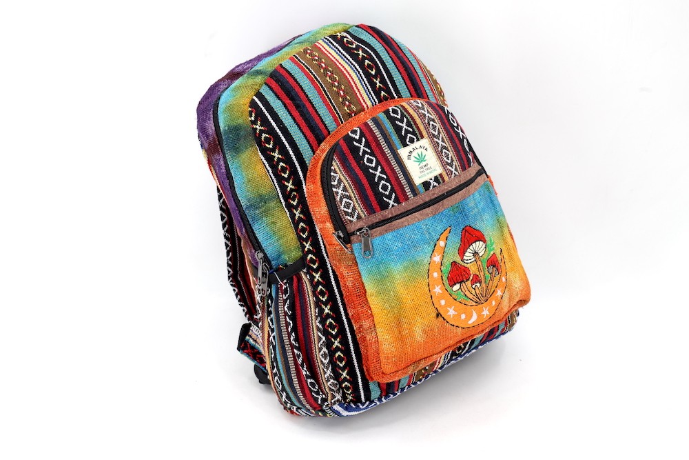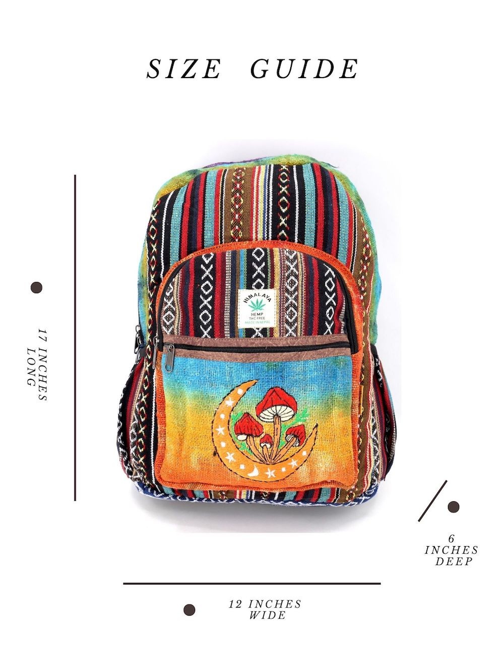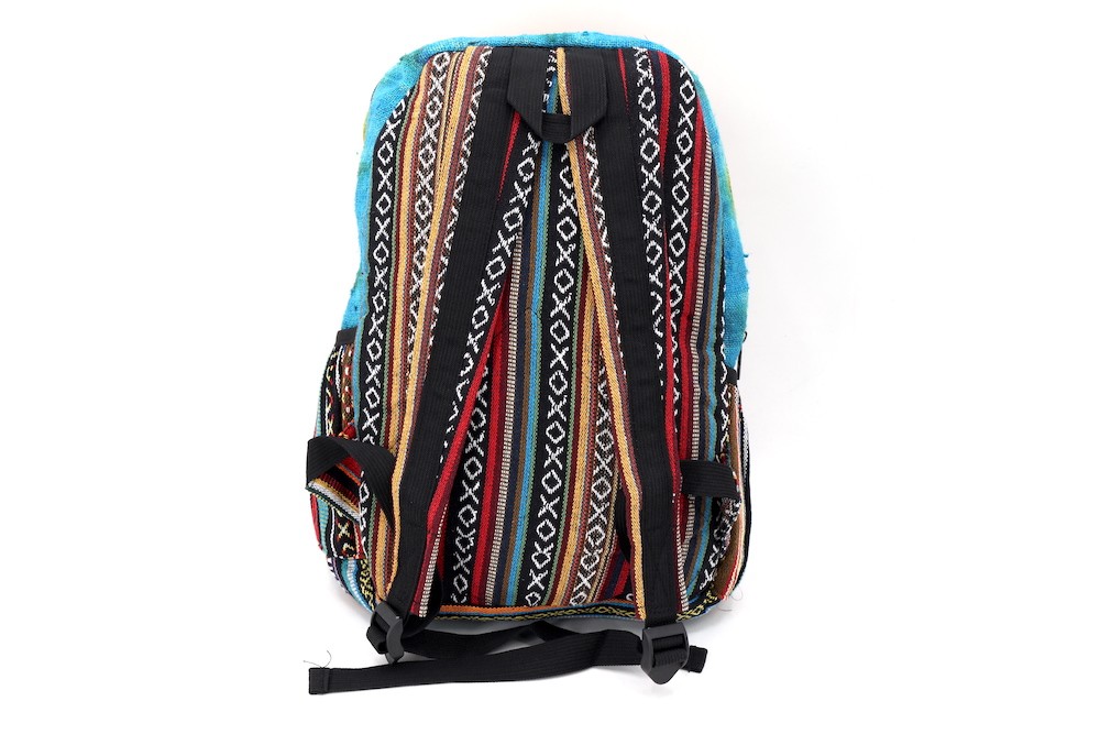• At Himalaya Handmade we are known for creating the modern hemp backpacks that are now available in profusion of design and colors. Our Mini backpack with multicolor Aztec pattern is made from eco-friendly natural hand-woven hemp and cotton fabric and it is beautifully handcrafted in Nepal, they are high quality and this backpack has everything you need. You will not find higher quality anywhere else. All of our bags are sourced from the mountainous regions of Nepal and are all 100% Handmade. This backpack features are it has a unique multi colored pocket. Handcrafted this Backpack Includes, laptop compartment – fits any type and size, 4 separate zippered compartments with 2 pockets, 2 water bottle holders, extremely strong construction, strong original two metal zippers on main compartment, soft padded straps and made from 100% Hemp, the entire bag is extremely strong but also breathable. Color of these bag will not be exact because arrangement of the pattern and these bags are handmade so in color can be slightly different. Pictures color are just example. Every bag is handmade and therefore unique.