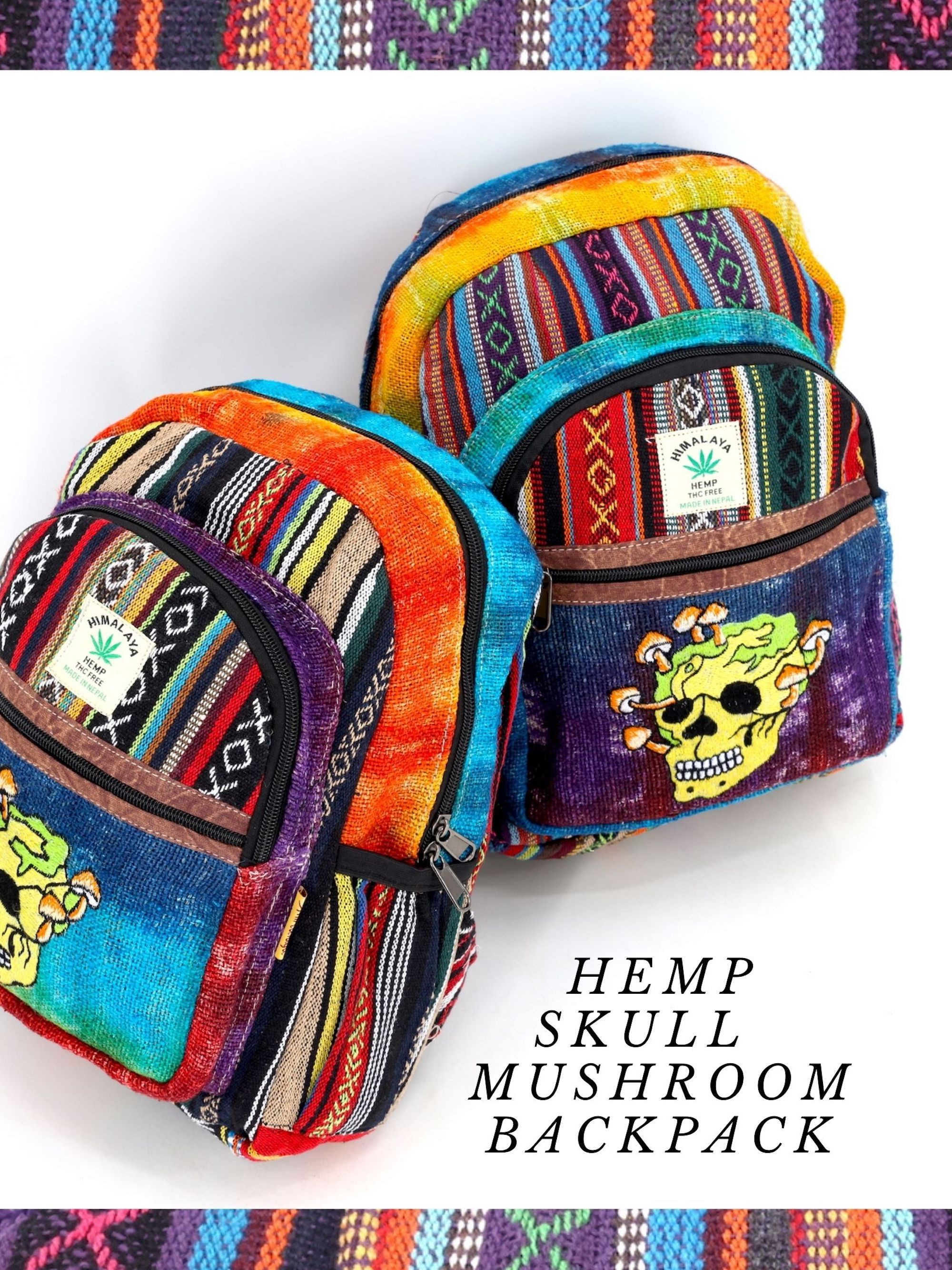 - At Himalaya Handmade we are known for creating the modern Mini hemp backpacks that are now available in a vast array of design and colors. Our Mini backpack with multicolor Aztec pattern which is made from eco-friendly natural hand-woven hemp and cotton fabric which is beautifully handcrafted in Nepal, they are of high quality and our backpacks have everything that you will need. You will not find products of higher quality anywhere else. All of our bags are sourced from the mountainous regions of Nepal and are all 100% Handmade. This backpack features are it has a unique multi colored pocket. Handcrafted this uniquely versatile Backpack comes with 2 pockets on the front both zippered and secured with a Velcro, the larger front pocket also has a zippered anti-theft pocket as well as compartment that can be used to store objects as large as 12 inches, There is also a secret back pocket which is zippered and can be used to contains various items, the bag also comes equipped with 2 water bottle holders. The bag has extremely strong construction, it has strong original two metal zippers on main compartment, soft padded straps and made from 100% Hemp, the entire bag is extremely strong but also breathable. Color of these bag will not be exact because arrangement of the pattern and the nature of these bags being handmade can cause the colors and patterns to be slightly different. Images for this bag are an overall example to what the bag looks like. Every bag is handmade and therefore unique.