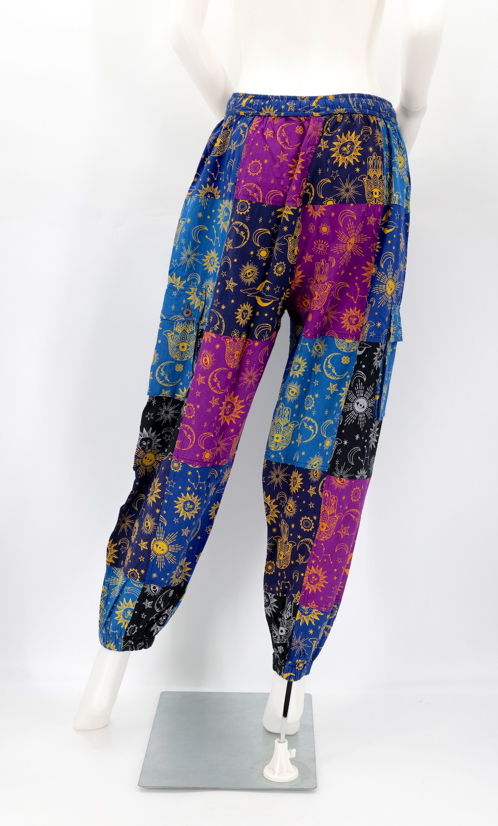 These unique Hippie Celestial Print Patterned Cargo Patchwork Pants are crafted from the finest 100% Natural Handwoven Cotton by some of the most skilled artisans. Elevate your style instantly with these extraordinary and highly fashionable Patchwork Pants that are suitable for almost any occasion, ensuring you always look your best.