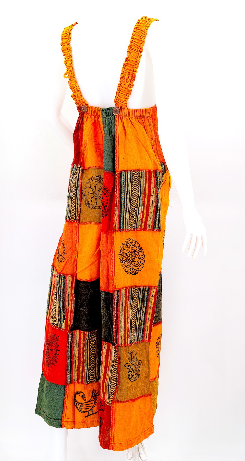 These Unique Hippie Wide Leg Gheri Block Print Multicolor Overlock Patchwork Overalls are crafted from the finest 100% Natural Handwoven Cotton by some of the most skilled artisans. Elevate your style instantly with these extraordinary and highly fashionable Multicolor Patchwork Block Print Overalls that are suitable for almost any occasion, ensuring you look your best every single time.
