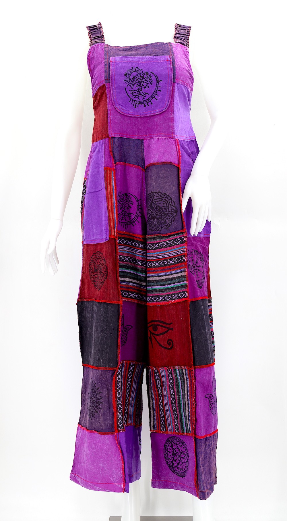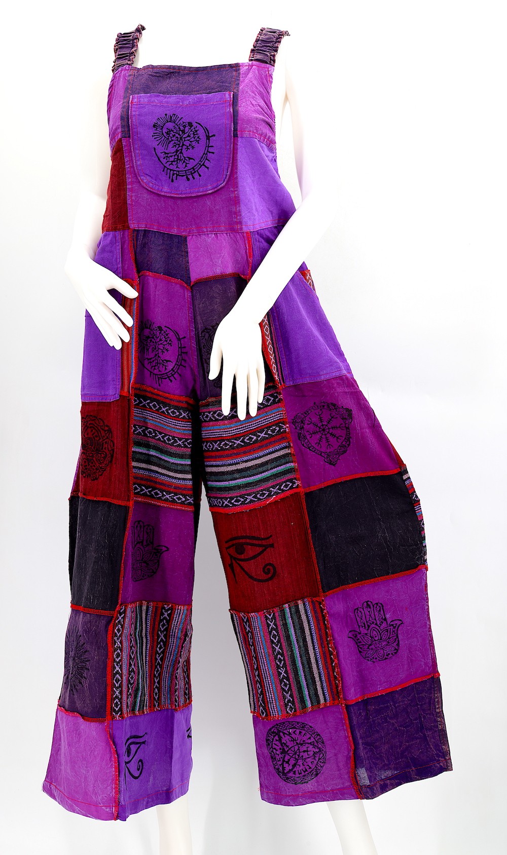 These Unique Hippie Wide Leg Gheri Block Print Multicolor Overlock Patchwork Overalls are crafted from the finest 100% Natural Handwoven Cotton by some of the most skilled artisans. Elevate your style instantly with these extraordinary and highly fashionable Multicolor Patchwork Block Print Overalls that are suitable for almost any occasion, ensuring you look your best every single time.