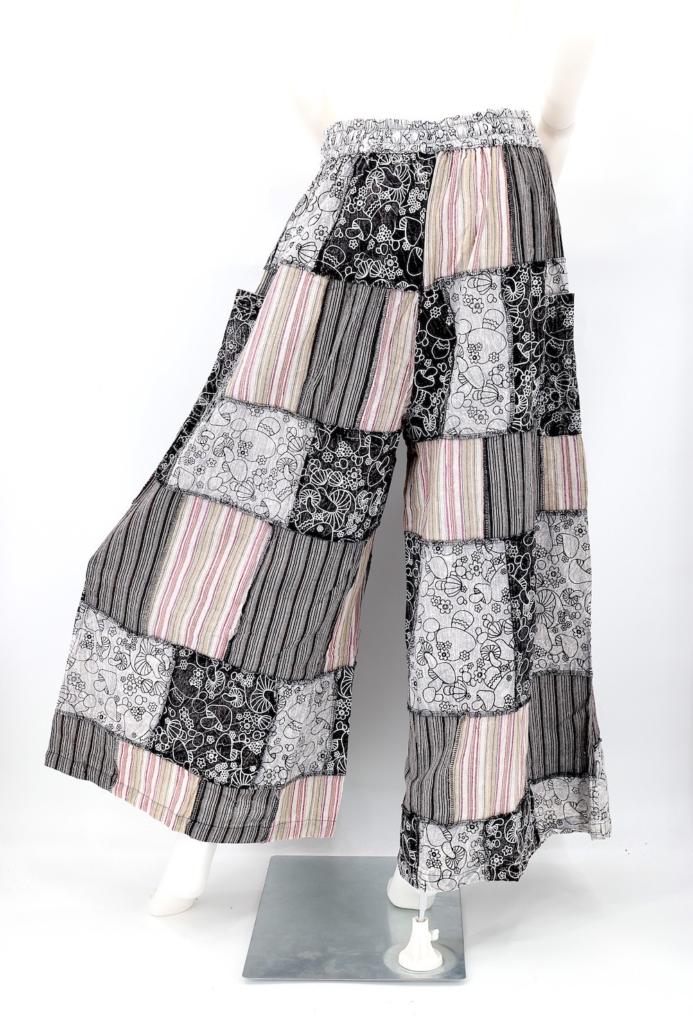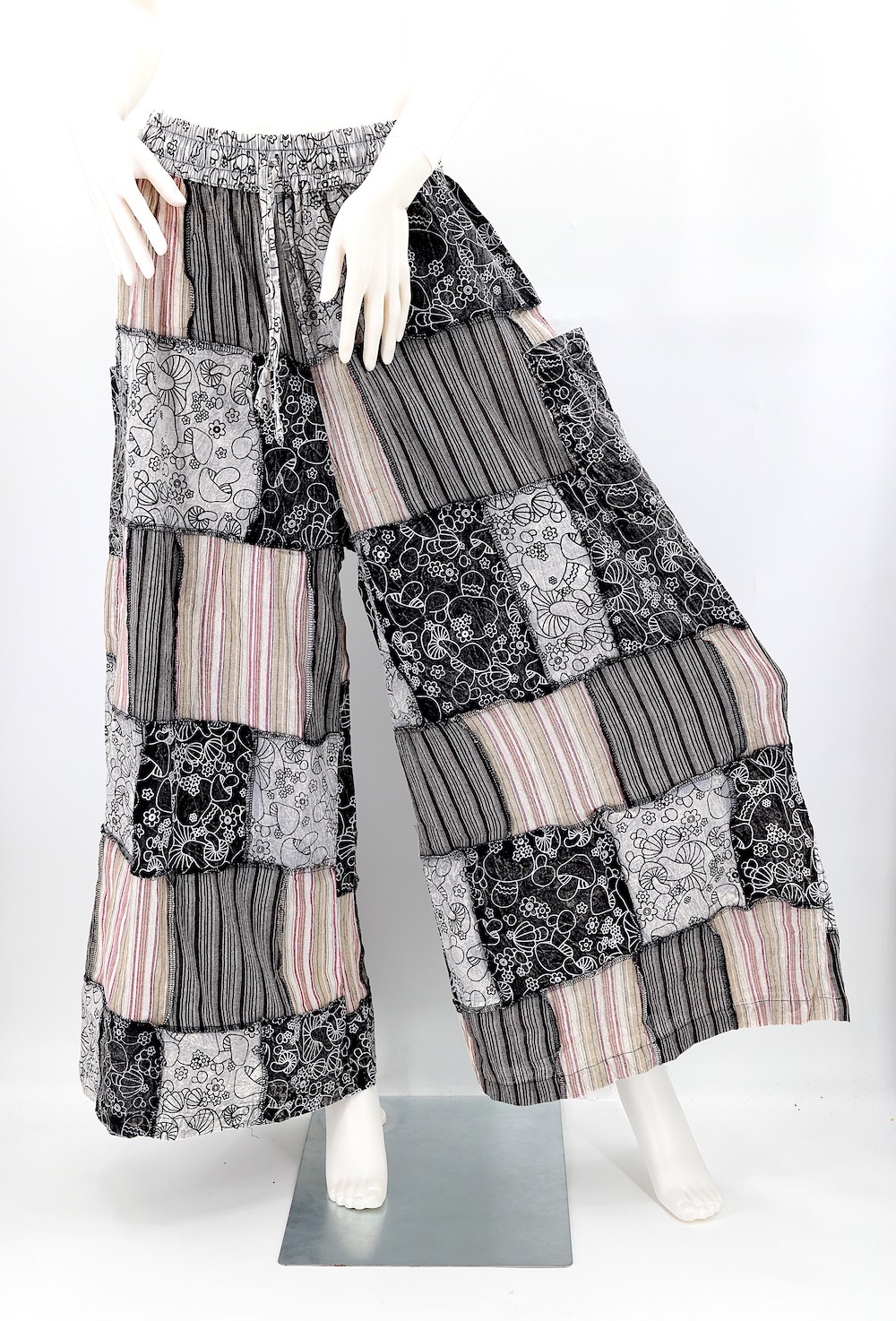 These unique Hippie Mushroom Designed Overlock Patchwork Pants are crafted from the finest 100% Natural Handwoven Cotton by some of the most skilled artisans. Elevate your style instantly with these extraordinary and highly fashionable Wide Leg Patchwork Pants that are suitable for almost any occasion, ensuring you look your best every time.