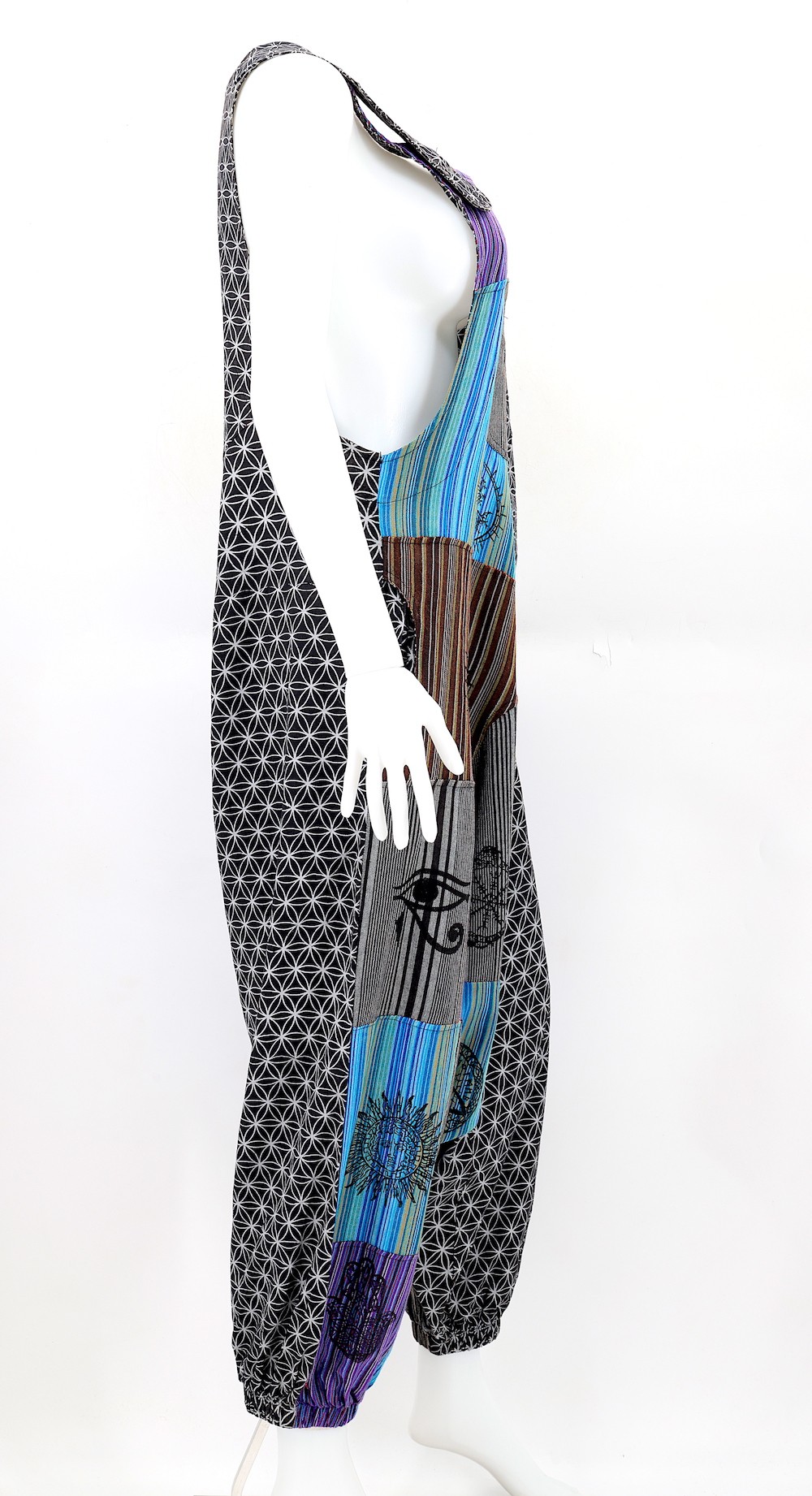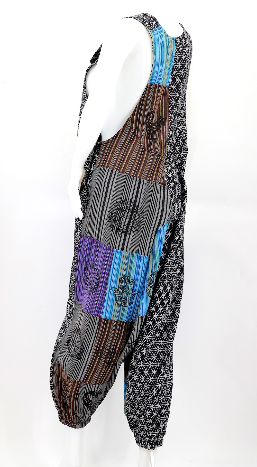These Unique Hippie Drop Down Flower of Life Patchwork Overalls are crafted from the finest 100% Natural Handwoven Cotton by some of the most skilled artisans. Elevate your style instantly with these extraordinary and highly fashionable Overalls that are suitable for almost any occasion, ensuring you look your best every single time.