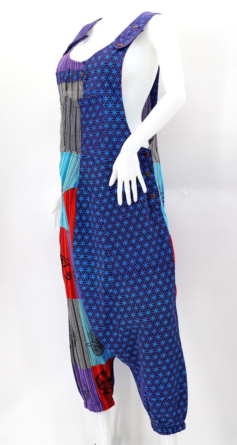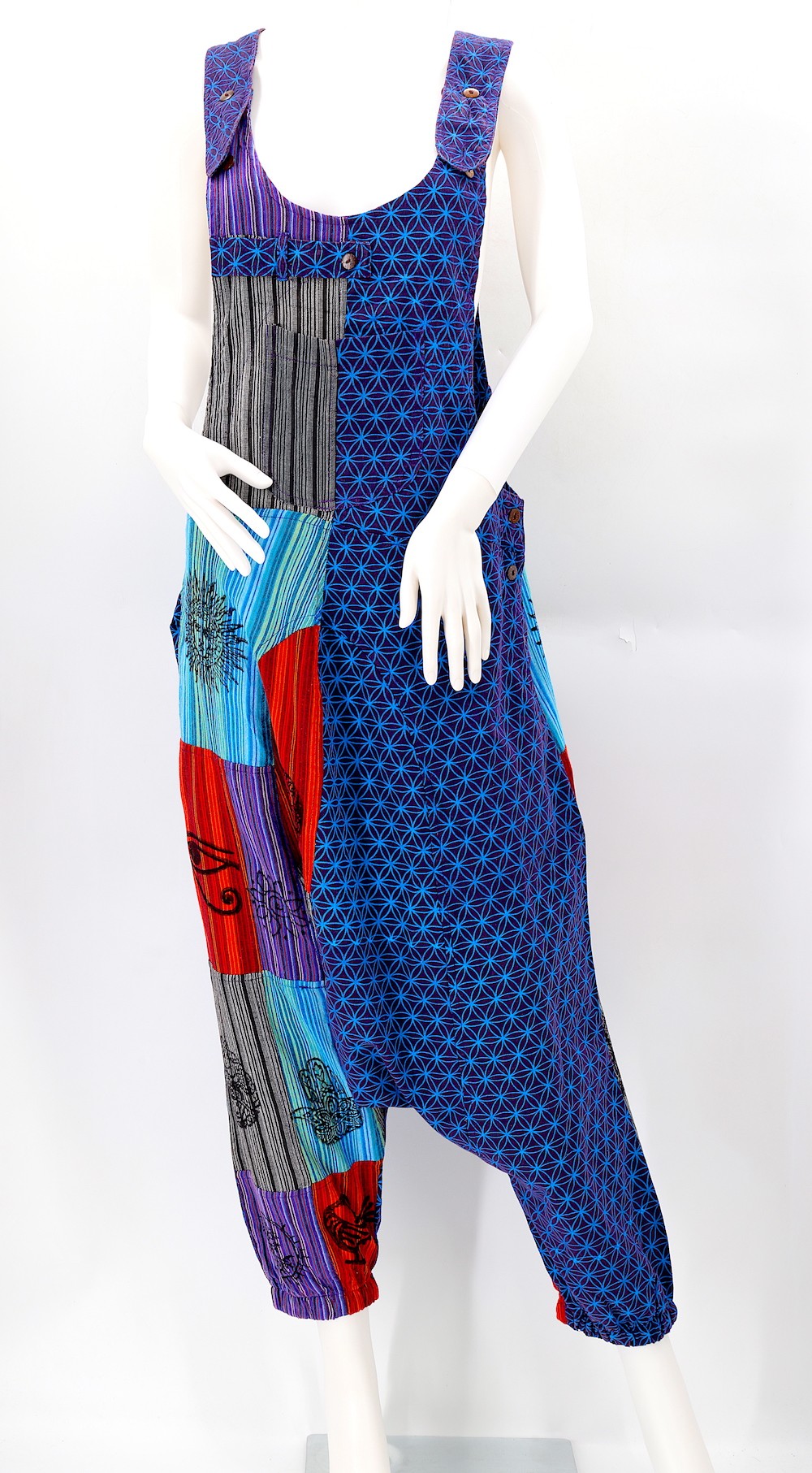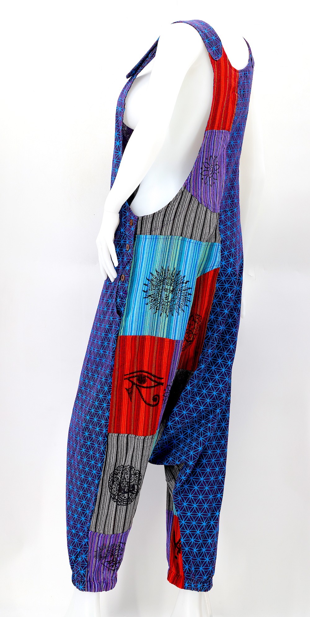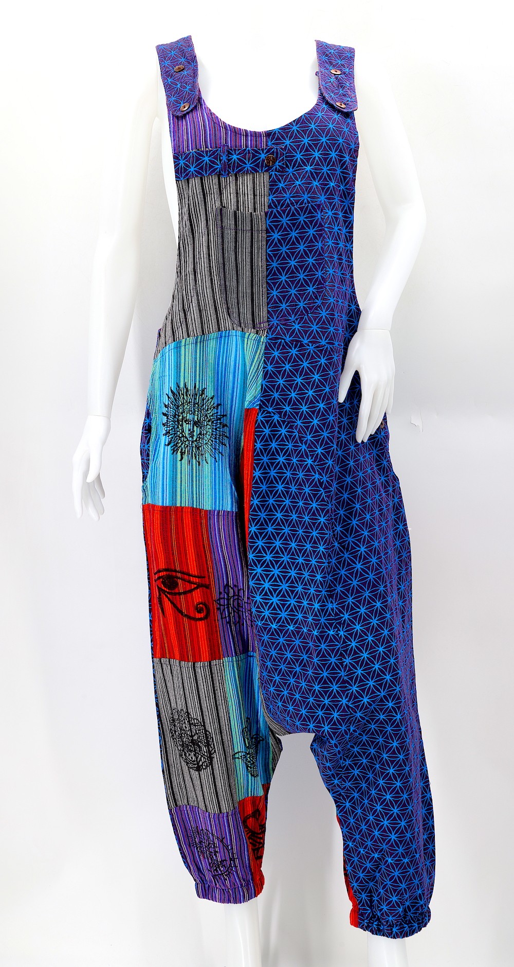 These Unique Hippie Drop Down Flower of Life Patchwork Overalls are crafted from the finest 100% Natural Handwoven Cotton by some of the most skilled artisans. Elevate your style instantly with these extraordinary and highly fashionable Overalls that are suitable for almost any occasion, ensuring you look your best every single time.