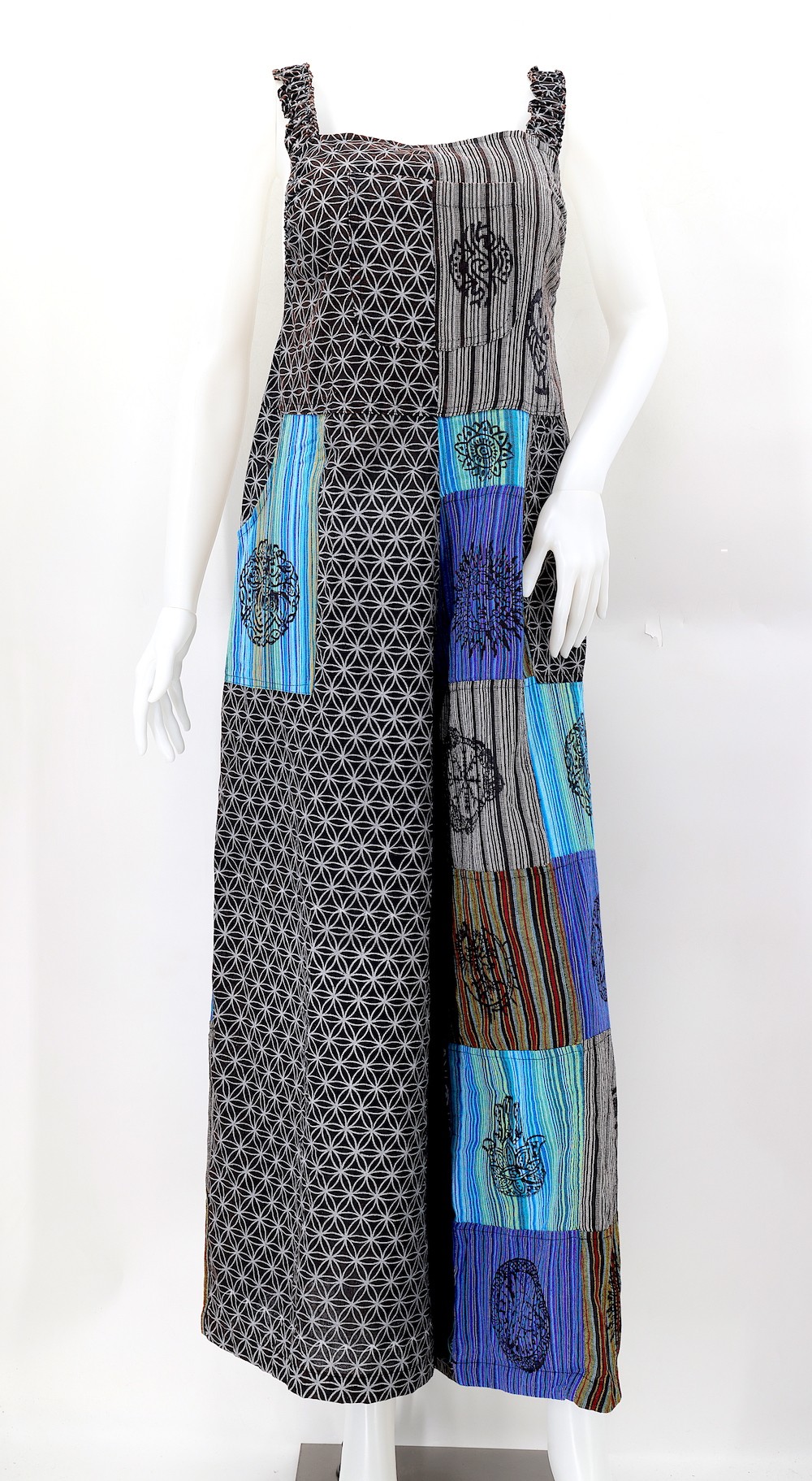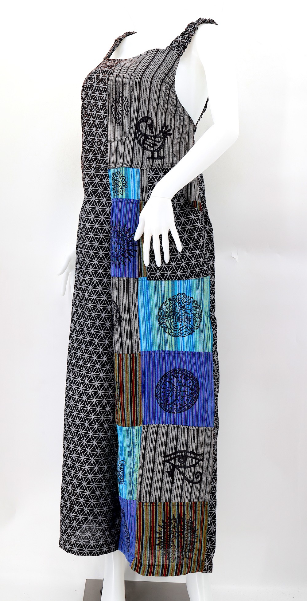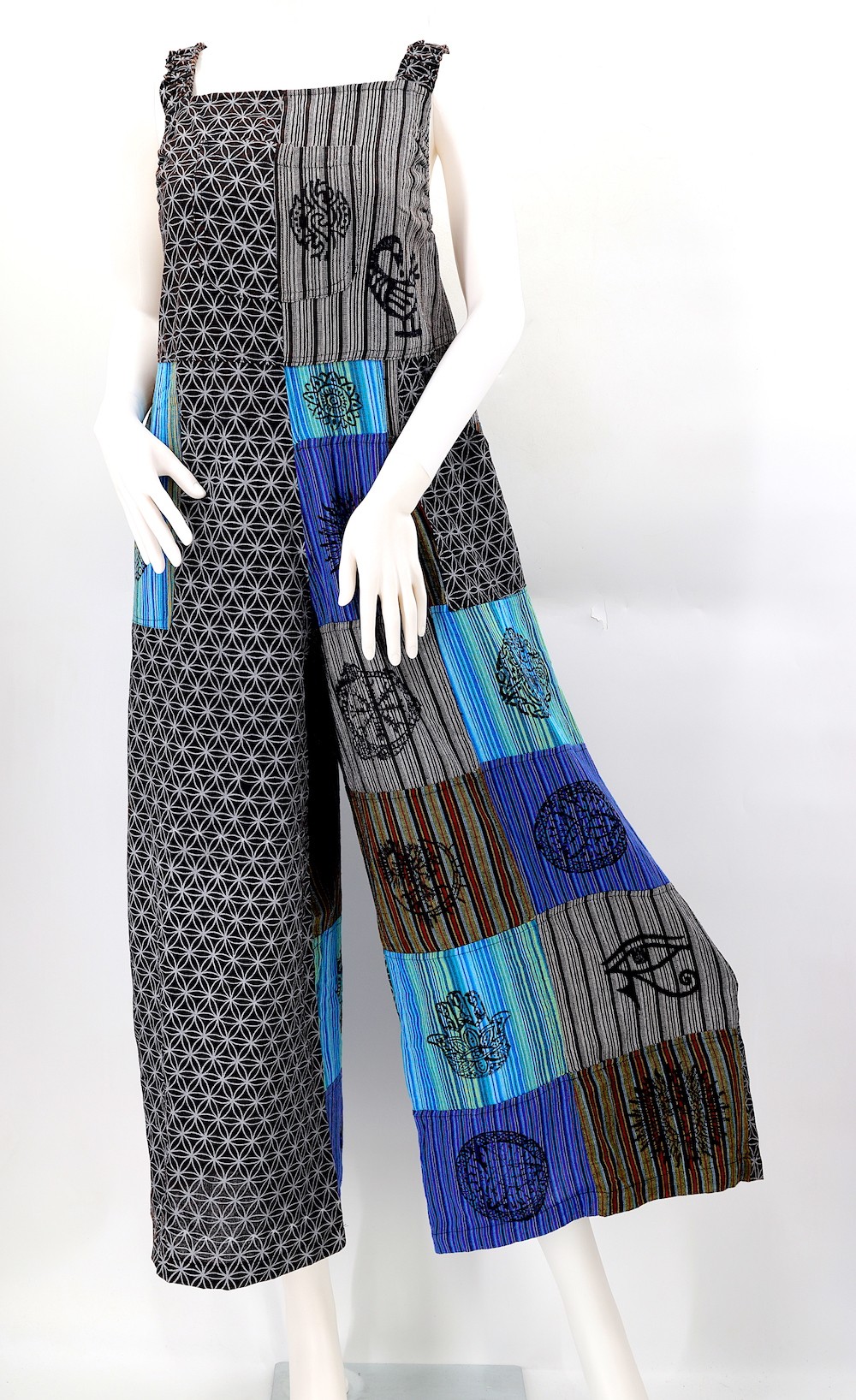 These Unique Hippie Wide Leg Flower of Life Pagan Symbols Block Print Patchwork Overalls are crafted from the finest 100% Natural Handwoven Cotton by some of the most skilled artisans. Elevate your style instantly with these extraordinary and highly fashionable Patchwork Pagan Symbols Block Print Overalls that are suitable for almost any occasion, ensuring you look your best every single time.
