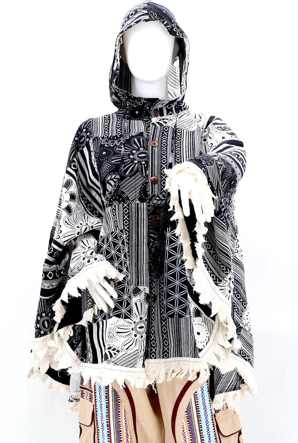 These Unique Hippie Overlock Patchwork Ponchos are crafted from the finest 100% Natural Handwoven Cotton by some of the most skilled artisans. Elevate your style instantly with these extraordinary and highly fashionable ponchos that are suitable for almost any occasion, ensuring you look your best every time.