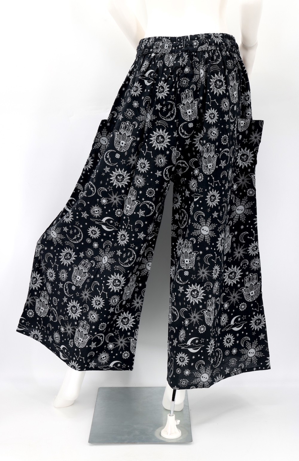 These unique Hippie Celestial Print Pants are crafted from the finest 100% Natural Handwoven Cotton by some of the most skilled artisans. Elevate your style instantly with these extraordinary and highly fashionable Wide-Leg Pants, which are suitable for almost any occasion and ensure you always look your best.