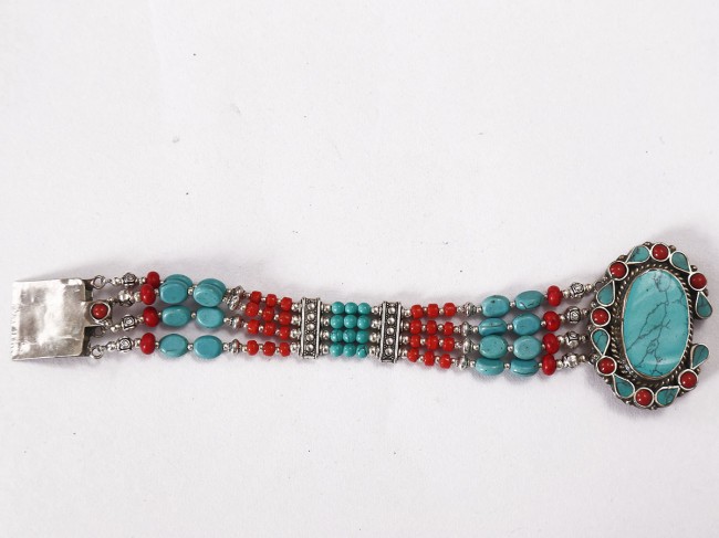 The authentic and beautiful handmade German silver bracelet mixed with turquoise polished stone and garnet polished stone. These bracelets are both whimsical and fashionable. From simple, classic styles to unique cocktail bracelet and these styles of bracelets fit for any occasion. These bracelets are crafted by using only simple hand tools and perfected silver pieces inset with quality gemstones.