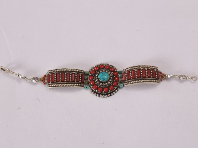 The authentic and beautiful handmade German silver bracelet mixed with turquoise polished stone and garnet polished stone. These bracelets are both whimsical and fashionable. From simple, classic styles to unique cocktail bracelet and these styles of bracelets fit for any occasion. These bracelets are crafted by using only simple hand tools and perfected silver pieces inset with quality gemstones.
