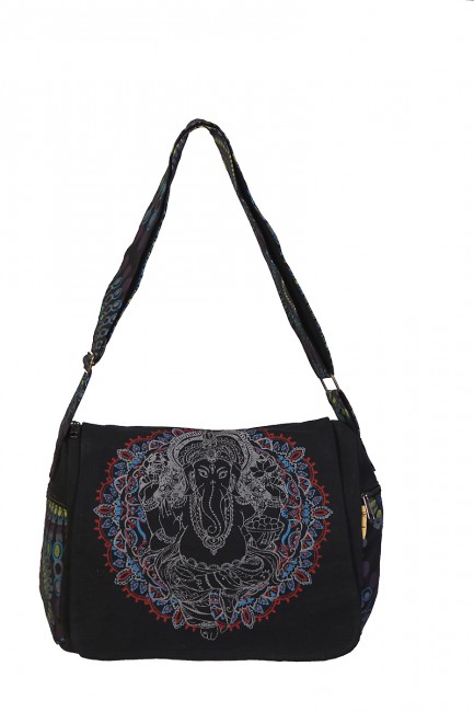 This beautiful Ganesh printed ladies cotton bags are handmade in Nepal. This beautiful ladies bags features are it has one outside pocket, 2 small pocket in the side & a large main compartment with zippered, it has also secrete pocket inside the main compartment and it is specially design for ladies. This cotton bag is extraordinary and fashionable. It is fair trade product.