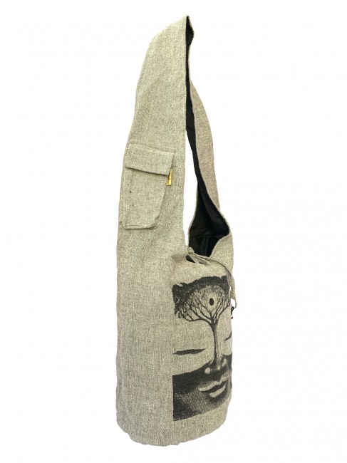 Pure 100% BTC Heavy duty vintage handwoven cotton Tree of Life Buddha (Boddhi Tree) print Yoga bag is handmade in Nepal. This Yoga bag has hidden pocket with zipper closuer inside the main compartment and the dimention of teh hidden pocket 7'' X 6'', The main compartment with zipper closuer also it has string with key ring on it which gives extra looks and also it has pocket on teh strap with flap cover and with velcor clouser where you can keep accessories. It is supremely versatile and fashionable. This bag is suitable for carrying passport, mobile phone and mini iPad and other nesecities. It is fair trade product. Could be hand washed or machine washed in cold water.