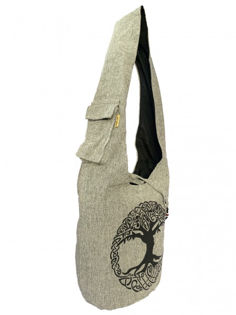 Pure 100% BTC Heavy duty vintage handwoven cotton Tree of Life print Yoga bag is handmade in Nepal. This Yoga bag has hidden pocket with zipper closuer inside the main compartment and the dimention of teh hidden pocket 7'' X 6'', The main compartment with zipper closuer also it has string with key ring on it which gives extra looks and also it has pocket on teh strap with flap cover and with velcor clouser where you can keep accessories. It is supremely versatile and fashionable. This bag is suitable for carrying passport, mobile phone and mini iPad and other nesecities. It is fair trade product. Could be hand washed or machine washed in cold water.