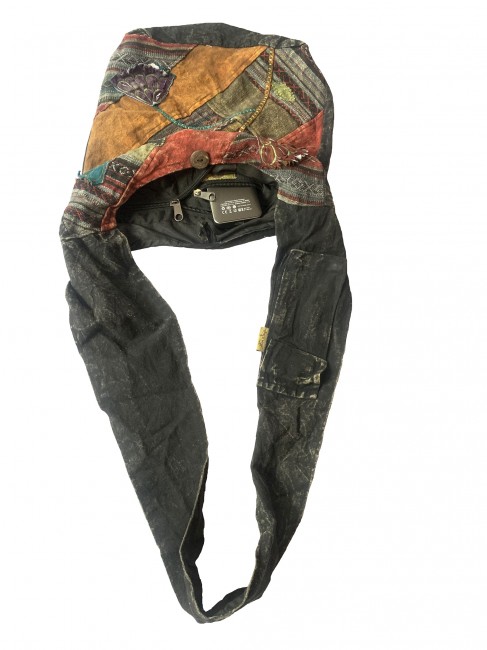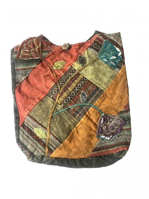 Pure 100% cotton Stonewashed Patch floweral Yoga bag is handmade in Nepal. This Yoga bag has hidden pocket with zipper closuer inside the main compartment and the dimention of teh hidden pocket 7'' X 6'', The main compartment with zipper closuer also it has string with key ring on it which gives extra looks and also it has pocket on teh strap with flap cover and with velcor clouser where you can keep accessories. It is supremely versatile and fashionable. This bag is suitable for carrying passport, mobile phone and mini iPad and other nesecities. It is fair trade product. Could be hand washed or machine washed in cold water.