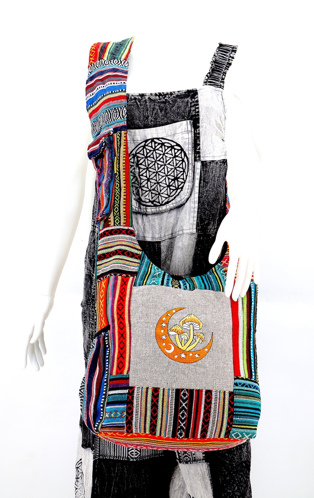 A versatile and beautiful Moon Mushroom Embroidered Handmade Cotton Crossbody Bag made with 100 percent natural handwoven cotton. Stitched and assembled by the most talented artisans in Nepal.