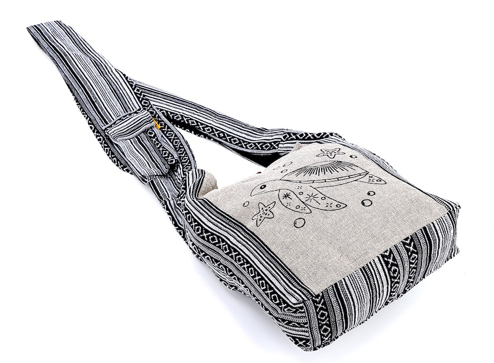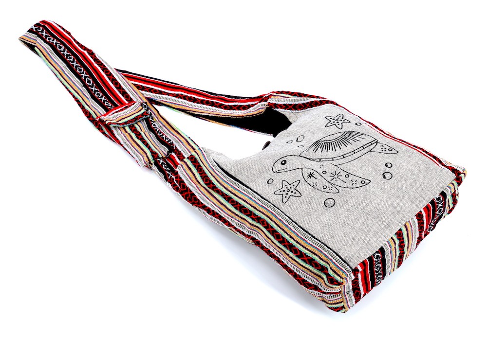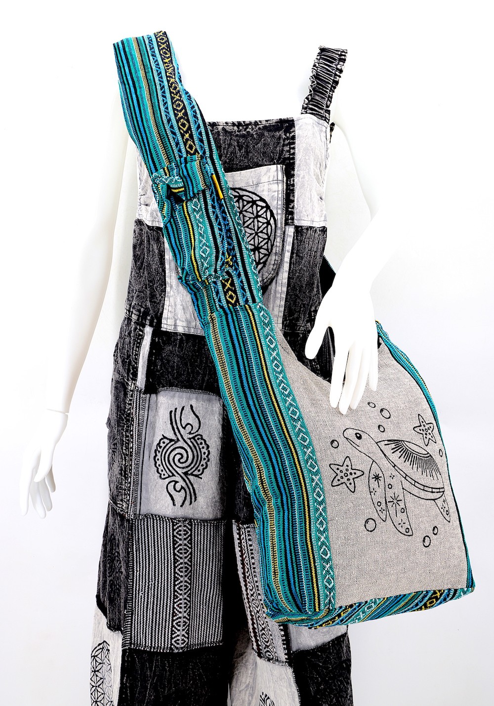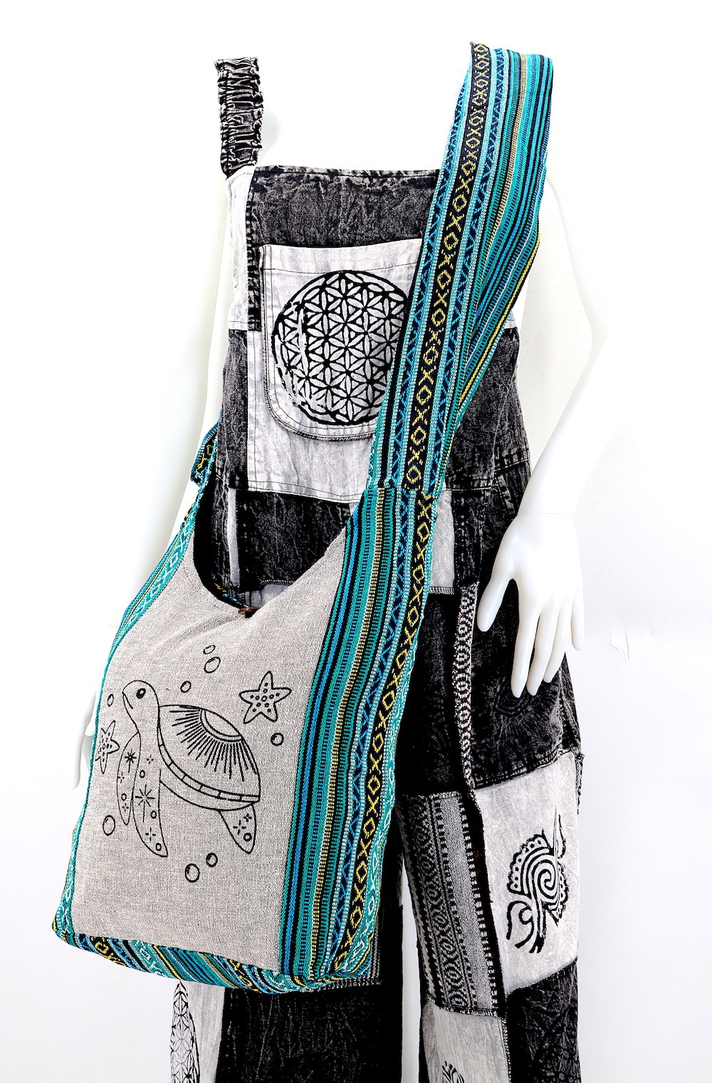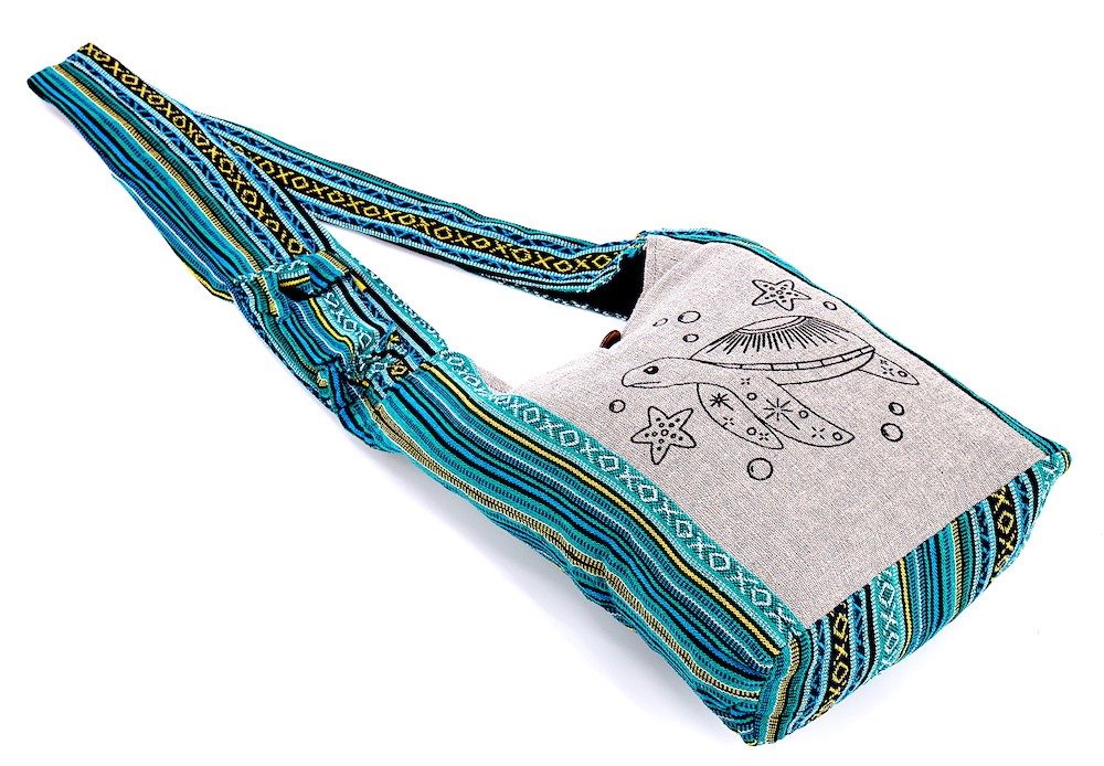 A versatile and beautiful Sea Turtle Print Handmade Cotton Crossbody Bag made with 100 percent natural handwoven cotton. Stitched and assembled by the most talented artisans in Nepal.