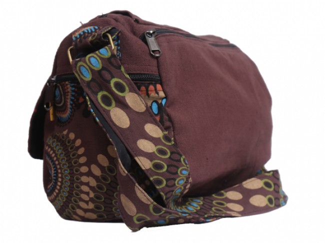 This beautiful Mandala printed 100% pure cotton bags are handmade in Nepal. This beautiful shoulder bag features are it has four compartment with zippers, it has secrete pocket with zipper in side the main compartment, one pocket on the front one pocket on the back and it has a long adjustable strap which you can clutch the bag across your body. This cotton bag is extraordinary and fashionable. And it is fair trade product.