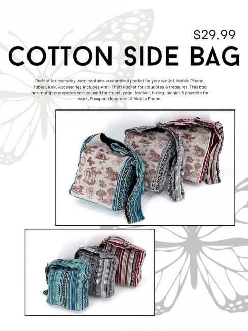 100% Natural Handwoven Cotton Fabric stitched by talented artisans in Himalaya range of Nepal. Purchasing means supporting underprivileged Nepalese communities who help make these bags.