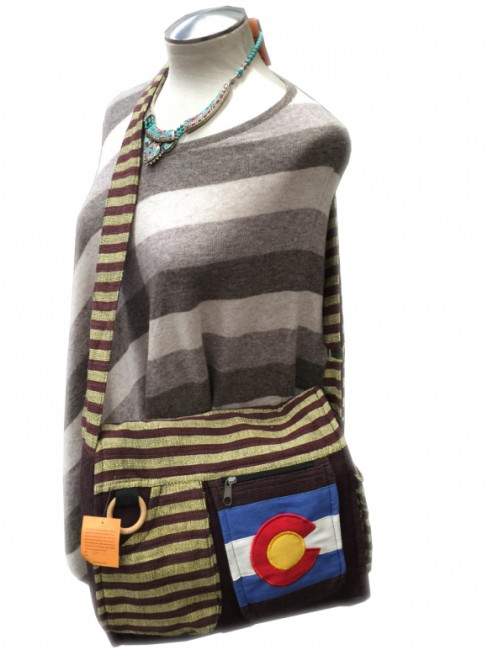 This beautiful Colorado flag embroidery 100% pure cotton bags are handmade in Nepal. This beautiful side bag features are it has two outside pocket & one cellphone pocket, a large main compartment with zippered, it has also secrete pocket inside the main compartment and it has a long adjustable strap which you can clutch the bag across your body. This cotton bag is extraordinary and fashionable. It is fair trade product.