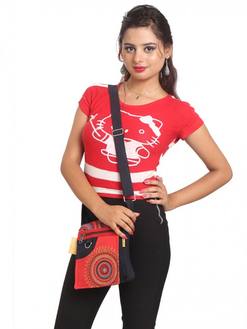 Pure 100% cotton passport bag is handmade in Nepal with great Mandala print. This passport bag has 3 compartment with zippers, in the main compartment it has secret pocket with zippers and it has adjustable strap. It is supremely versatile and fashionable. This bag is suitable for carrying passport, mobile phone and mini iPad. It is fair trade product.