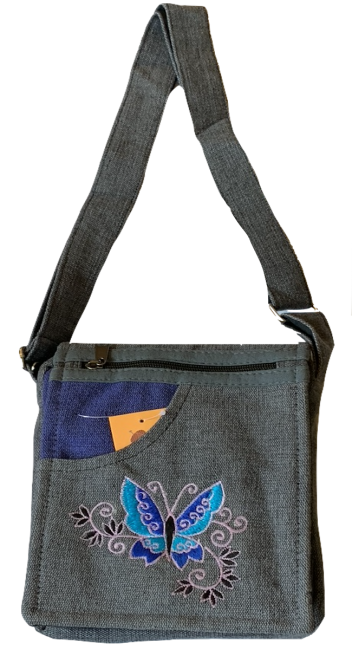 This beautiful Butterfly embroidered 100% pure cotton passport bags are handmade in Nepal. This beautiful passport bag features are it has one pocket in the front & one pocket in the back, it has two compartment, a large main compartment with zippered pocket inside and it has a long adjustable strap which you can clutch the bag across your body. This cotton passport bag is extraordinary and fashionable. This passport bag is suitable for carrying document and Ipad.