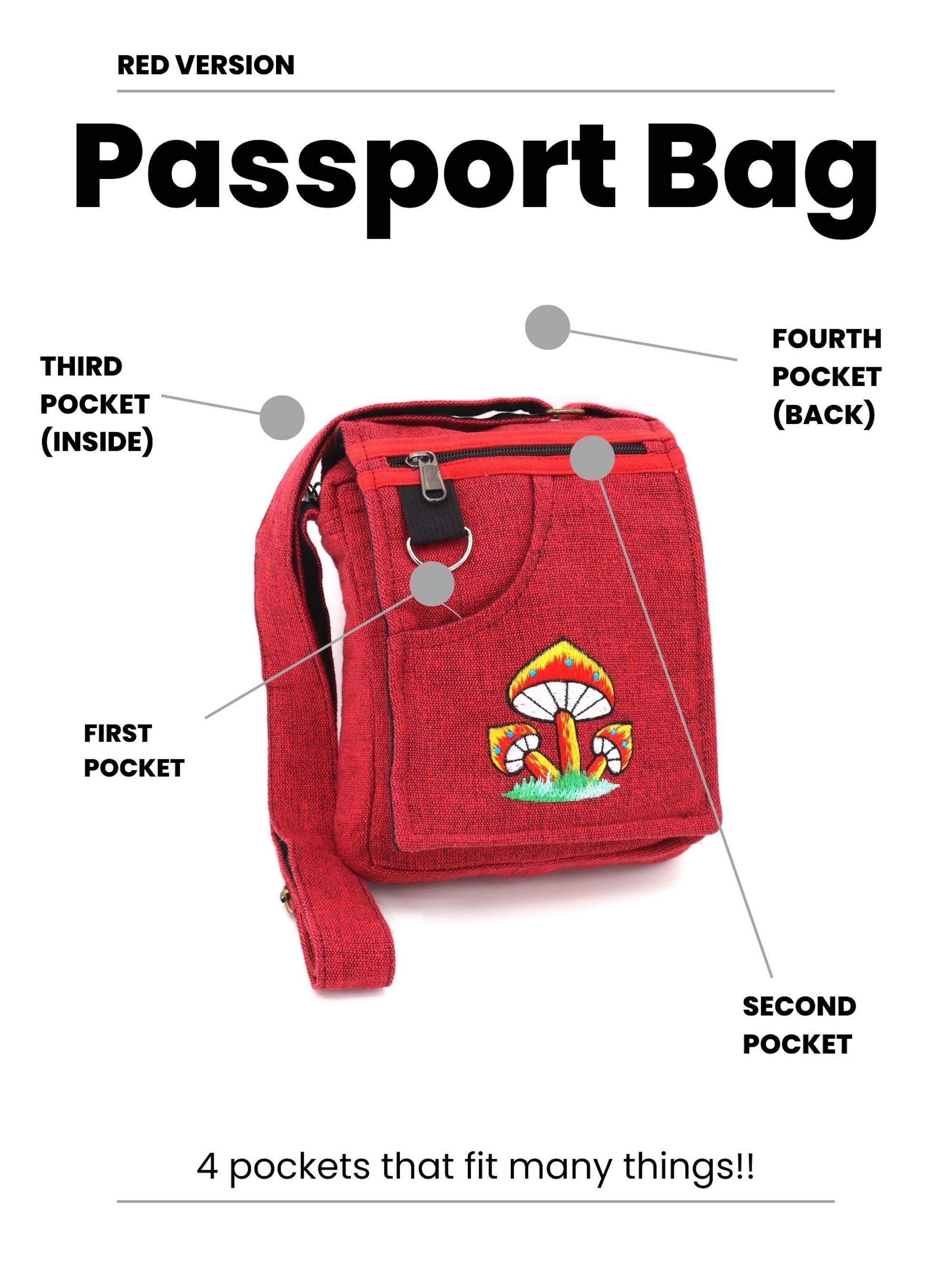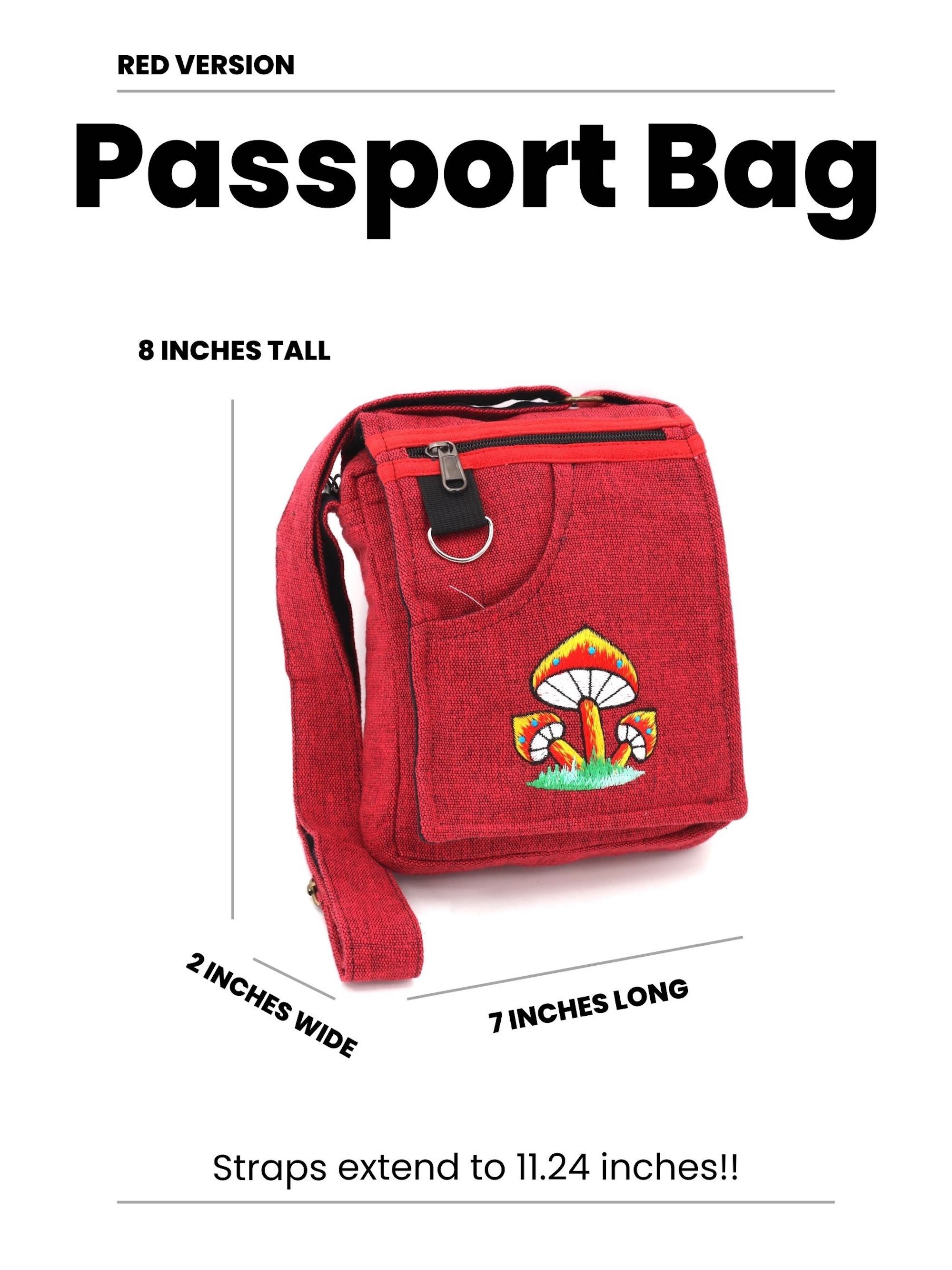 The beautiful Hand-Woven Cotton Travel bag is hand made in Nepal with pure 100% organic Himalaya Cotton. This modern Mushroom Embroidery Cotton passport bag is supremely versatile and fashionable. This bag features are it has two compartments with zippers and it has adjustable strap with outside two pockets in the front and in the main pocket above with a zipper. It is a fair trade made product.