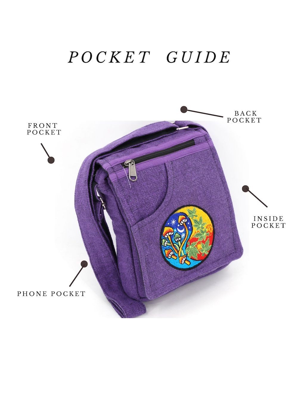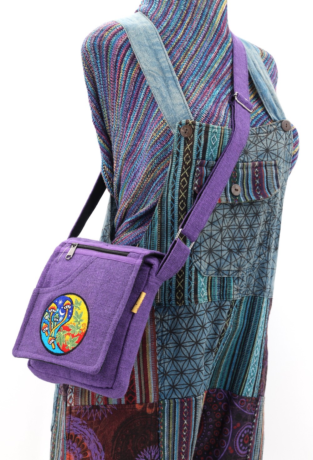 The beautiful Hand-Woven Cotton Travel bag is hand made in Nepal with pure 100% organic Himalaya Cotton. This modern Mushroom Embroidery Cotton passport bag is supremely versatile and fashionable. This bag features are it has two compartments with zippers and it has adjustable strap with outside two pockets in the front and in the main pocket above with a zipper. It is a fair trade made product.