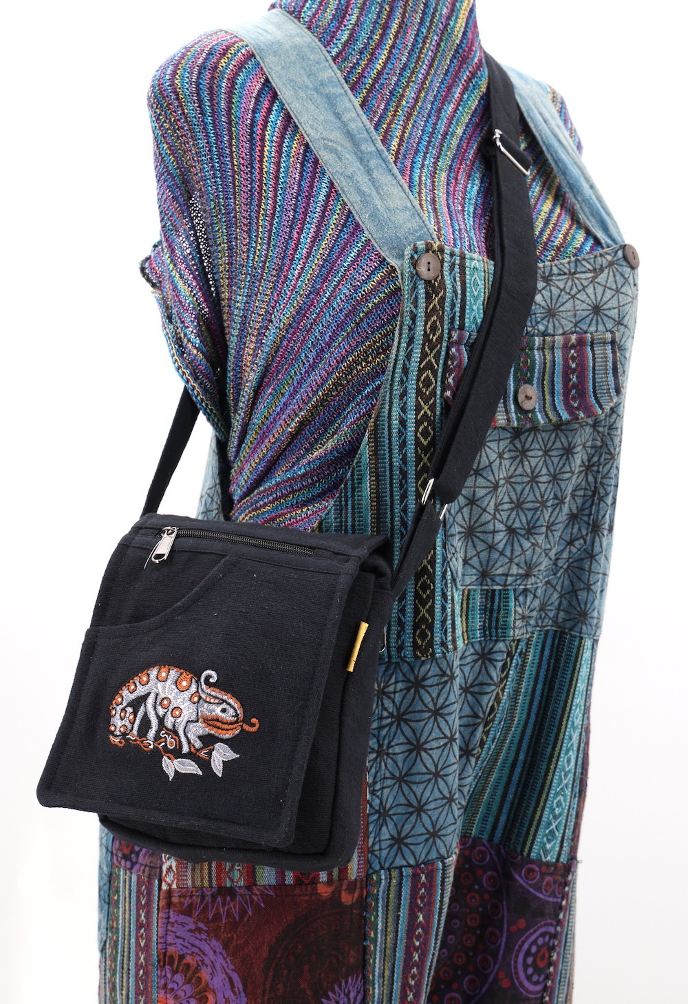 A versatile and beautiful Chameleon designed hand embroidered 100% Natural THC Free Himalaya Hand woven Cotton Fabric stitched by talented artisans in Himalaya Range of Nepal. Support underprivileged Nepalese communities with your purchase. Hand wash or Machine wash separately in cold water.