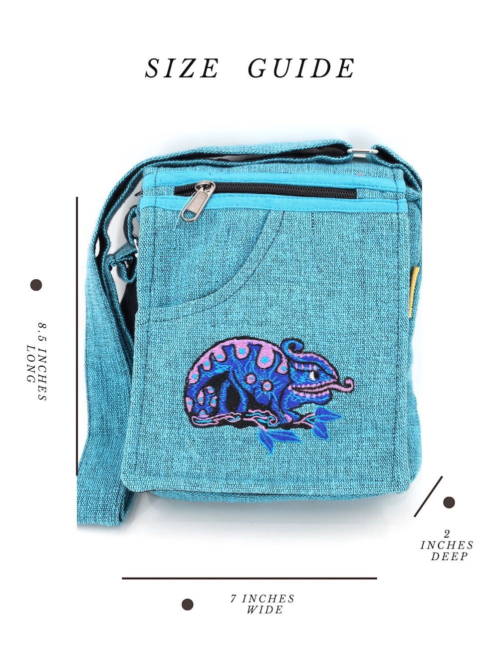 A versatile and beautiful Chameleon designed hand embroidered 100% Natural THC Free Himalaya Hand woven Cotton Fabric stitched by talented artisans in Himalaya Range of Nepal. Support underprivileged Nepalese communities with your purchase. Hand wash or Machine wash separately in cold water.